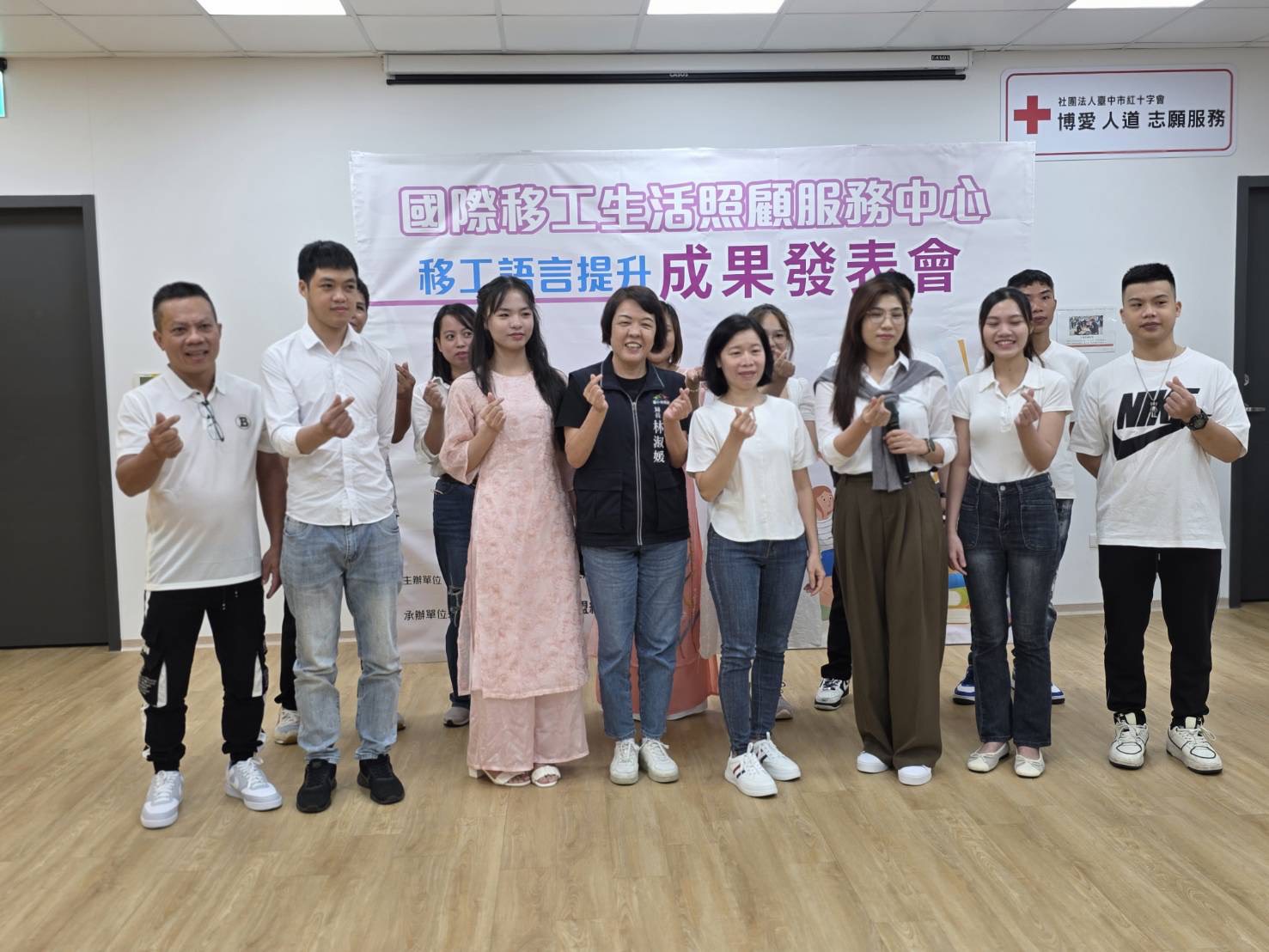 台中市勞工局自今年2月起陸續開辦14班移工中文課程,已全數順利結訓。日前於東協廣場10樓舉辦「移工語言提升成果發表會」,學員演唱「童話」、「流星雨」、「心太軟」等中文歌曲並展示作品,展現學習成果並促進多元文化交流。其中,印尼移工台語班學員更以一曲「家後」,獲得滿堂喝采。勞工局期盼藉由成果發表會,鼓勵更多移工踴躍參與語言課程。