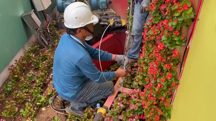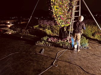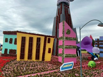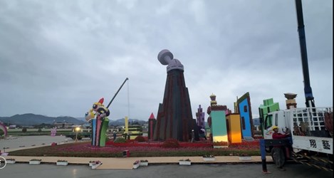 觀旅局陳美秀局長表示,為確保花毯節能在颱風過後順利恢復展出,今(10)日下午16時30分閉園後,園區立即展開第一階段防颱作業。工作團隊針對主花毯及各項裝置進行加固,除強化固定小型設施外,並出動重型機具吊運水泥墩加強穩固,以確保現場安全無虞。