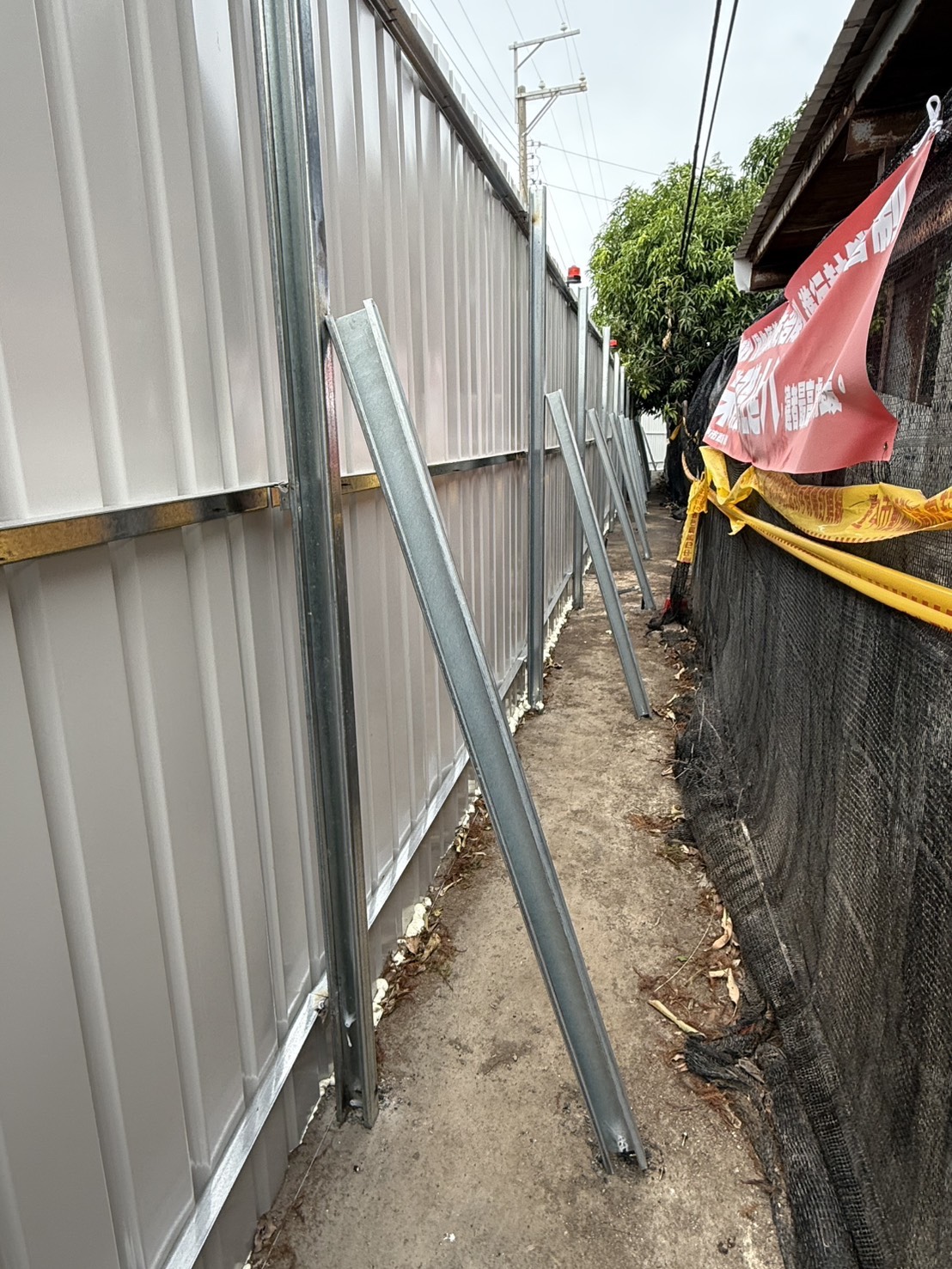建設局長陳大田說明,經與動保處現勘後,案場採用2.4公尺高甲種圍籬,並於內側增設C型鋼支架,支撐結構以鋼筋打入地面並焊接固定,大幅提升抗風強度;同時以發泡劑封閉下方縫隙,加強防護效果。全長約82公尺的圍籬以最快速度在一天內完工,展現高效率執行力,並獲研考會主委林鼎超現場肯定。