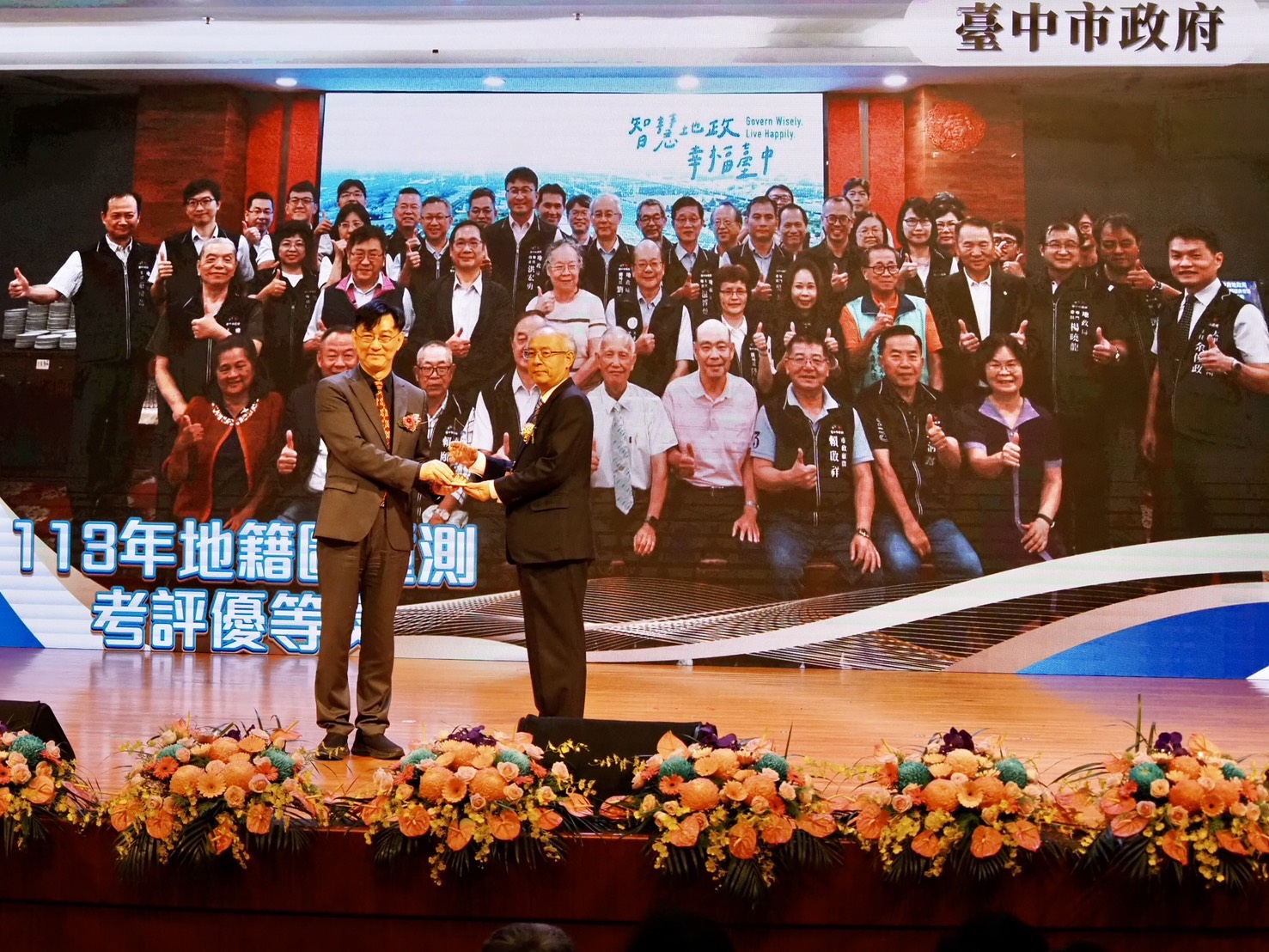 地政局長曾國鈞指出,地政局秉持「智慧地政、地利共享」施政願景,持續體察民意、簡政便民、精進服務。近年來,中市地政團隊穩健推動各項地政業務,專業表現深獲內政部肯定。其中,市府長期配合中央政策執行地籍圖重測計畫,自101年起連續13年獲得內政部評比優等,足見中央高度認同市府在推動圖地一致與地籍正確化方面的努力與成果;「執行地政業務優良獎(測量)」彰顯中市在測量創新與服務品質的優異表現;「三維地籍建物整合建置考評特優獎」展現地籍資訊數位化與整合應用的卓越成效;「不動產阻詐成效績優獎」則突顯市府團隊在防詐作為上的積極用心與領先成果。