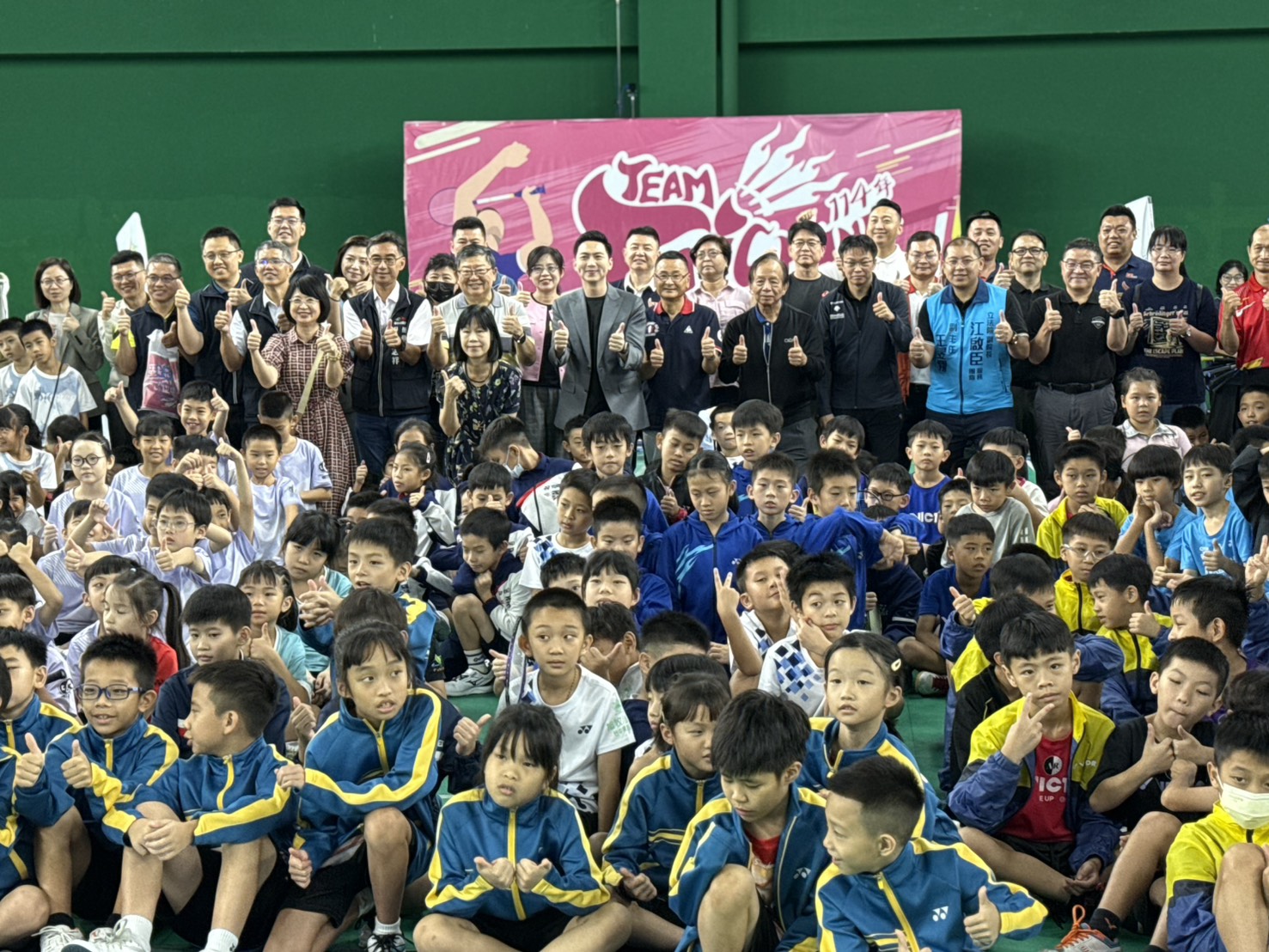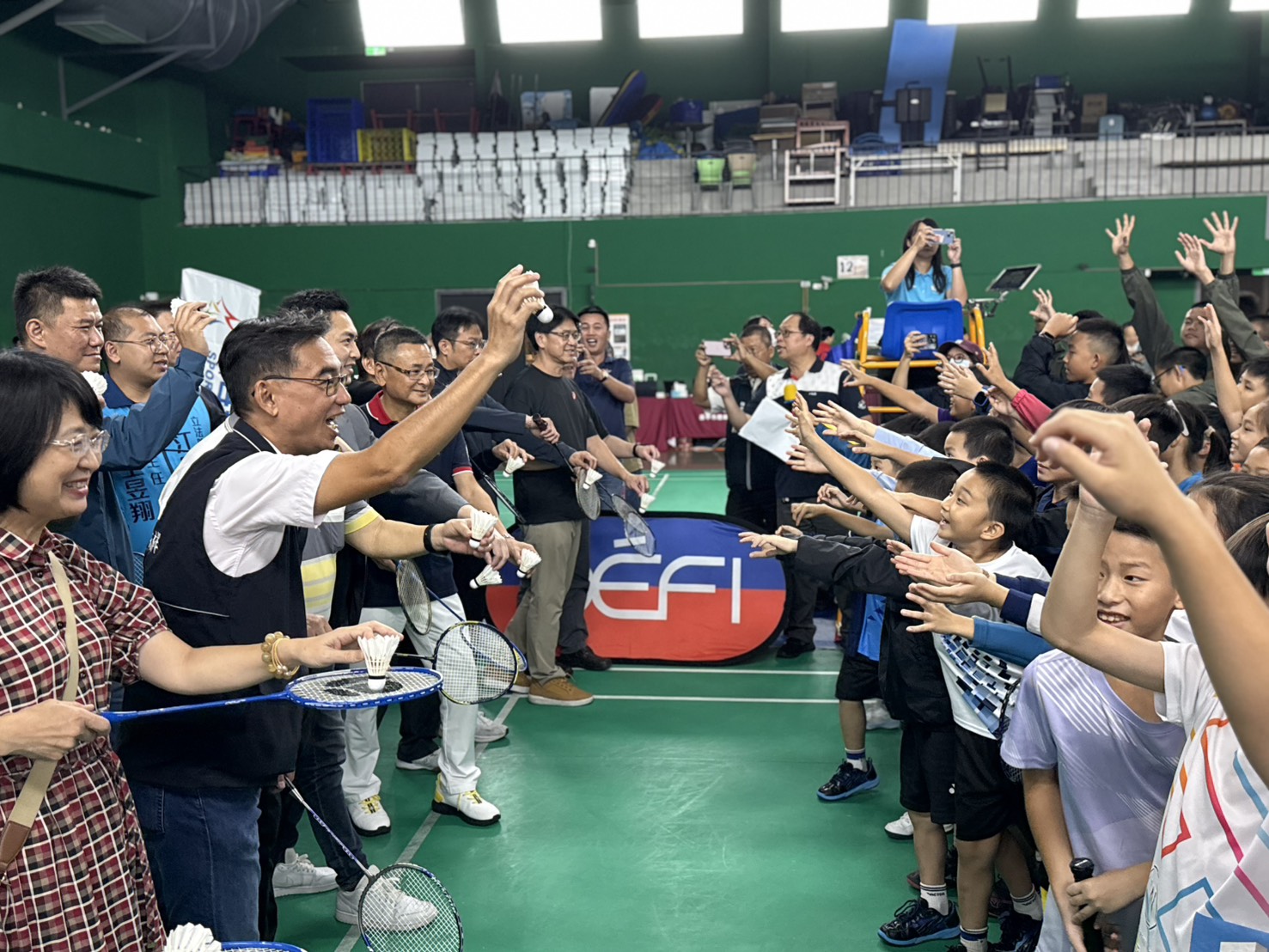 今日活動,立委廖偉翔、立法院副院長江啟臣公共關係部副主任王昱翔、市府運動局長游志祥、專員吳宗學、教育局體健科股長陳粲中、中華民國羽球協會秘書長林怡男、中華民國青少年羽球推廣協會理事長江文岳、台中市體育總會羽球委員會主委謝震穎、西屯區區長鄭錫禧、朝馬國民運動中心主委朱俊宏、執行長李湘梅、百弘體育用品有限公司董事長程峻彥等人均到場共襄盛舉,另有多所學校校長及家長會長蒞臨支持,展現對羽球運動發展的高度重視與支持。(11/11*11)*運動局