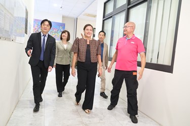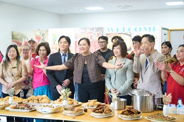 中午時分,一行人前往潭子科技產業園區一處專屬外籍朋友的嶄新宿舍,他鄉遇故知就從舌尖說起,席間以自助餐形式彙集台中道地菲國小吃與菜餚。在彭代表帶領之下,經發局長張峯源、新聞局長欒治誼、法制局長李善植以及全場不分國度的工作團隊及菲國移工一同禱告「謝飯」。濃郁甜鹹的椰香飄盪在四週,在地食材香蕉、芋頭及蔬菜在國際交流廚藝的魔術之下也能變身「台中南洋風味」,代表入口的欣喜表情訴說這是台菲長期交融的成果,讚嘆家鄉味非常道地。