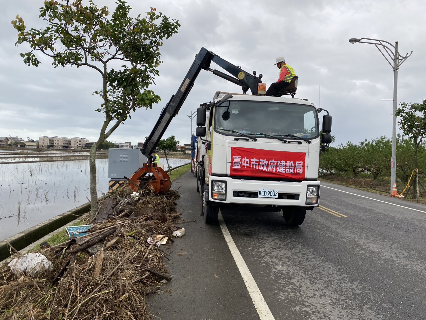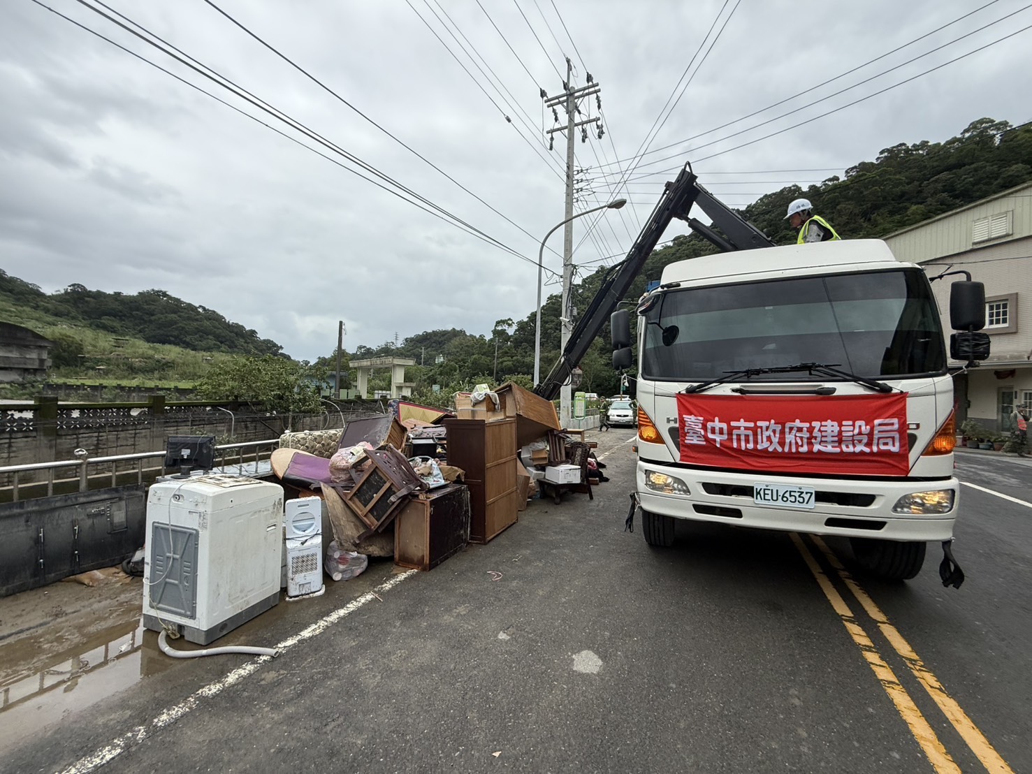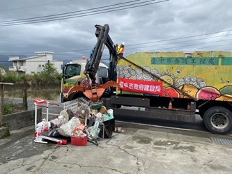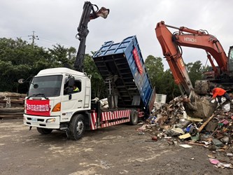 建設局指出,颱風過後淤泥與廢棄物大量堆積,各區復建需仰賴人力與機具密集投入。此次台中隊出動多部山貓、抓斗車及20名以上熟練人員,與地方團隊緊密合作,不僅加速道路通行恢復,也協助校園與社區盡早回到正常生活軌道。(11/14*17)*建設局