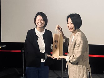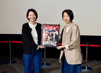 台中市影視發展基金會副執行長王允踰(前排左),與《監所男子囚生記》製作人黃郁茹(前排右),與現場觀眾一起合影留戀。