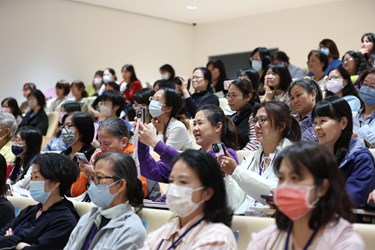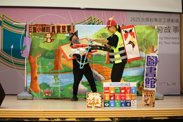 今年以「聽.咱的故事」為主題,邀請「金枝演社」創辦人王榮裕分享〈劇場開媠花〉,以戲劇詮釋母語之美;「20%實驗劇坊」講師郭陽山則帶領志工以聲音與肢體創作,開啟故事與劇場結合的更多可能。現場還有宜蘭「醜小鴨故事劇團」演出《猴山仔紅尻川》與中市圖「小猴子劇團」的台語版《三隻小豬的真實故事》,笑聲與掌聲不斷,洋溢滿滿閱讀能量。