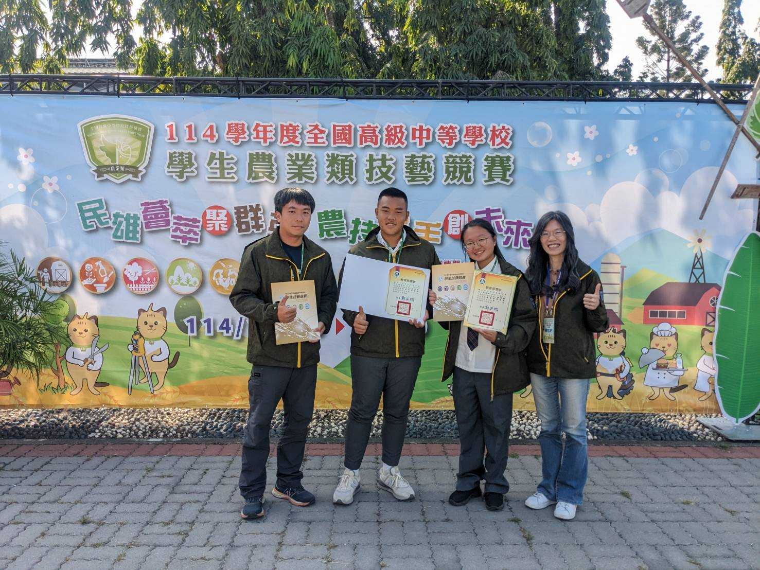 教育局長蔣偉民表示,市長盧秀燕重視並大力推動技職教育,台中市已連續8年獲中央評鑑為技職教育「優等」;孩子們靠著堅持與努力獲得肯定,代表台中農業教育的扎根與教師團隊的用心,為學生感到非常驕傲。