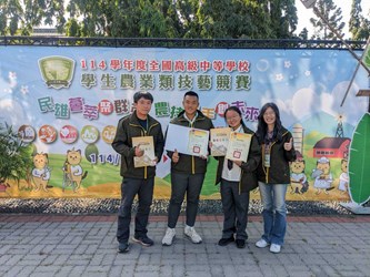 教育局指出,農業類技藝競賽項目包含農場經營、造園景觀、畜產保健、生物產業機電、食品加工及檢驗分析等9個職種,不僅與土地有實際深度連結,更涵蓋運用科技關心經濟動物健康及人民食品安全等項目;賽事結合專業知識與實務操作,選手必須投入大量時間練習才能在全國舞台脫穎而出。這次新社高中榮獲3優勝,分別由張愛鈴同學及陳秉澤同學獲得「農場經營職種」優勝、蔡秉翰同學獲得「造園景觀職種」優勝。