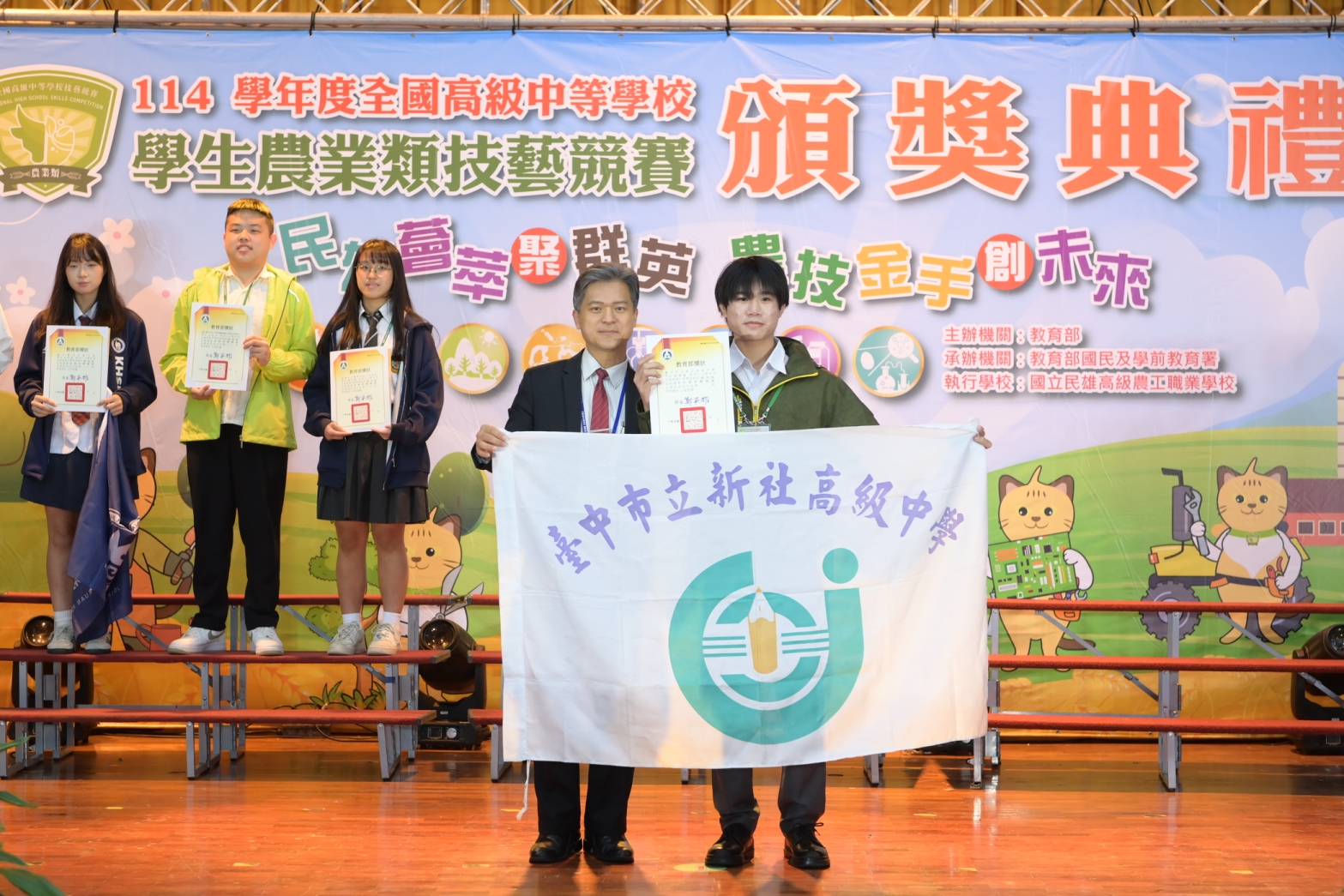 教育部主辦「114學年度全國高級中等學校學生技藝競賽」農業類競賽,11月18日至20日在嘉義民雄農工舉行,全國計31校、250位學生同場較勁,台中市2所學校、10名學生參賽,最終由新社高中獲得3優勝的佳績。