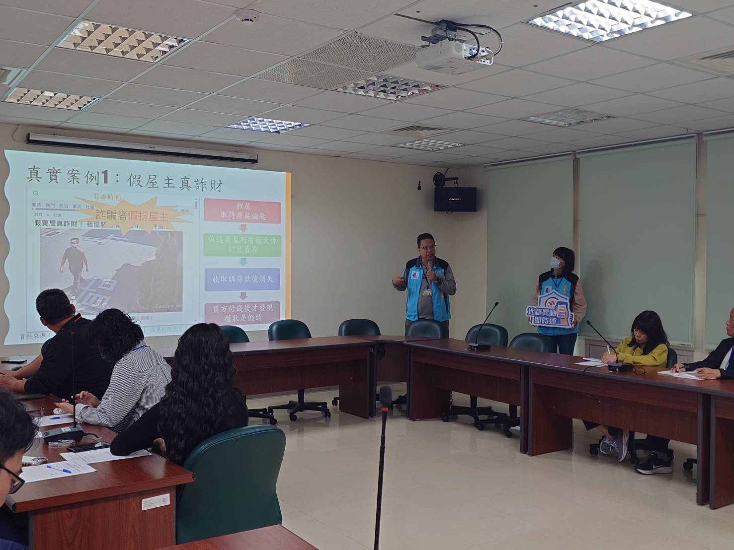為強化鄰里社區基層防詐與識詐能力,龍井地政事務所主動與龍井區公所合作,於11月19日在里幹事工作會報中進行「防詐騙宣導」,協助里幹事掌握最新防詐知識及防詐工具,並將此一觀念帶入鄰里,進一步提升鄰里社區防詐的防詐守護力。