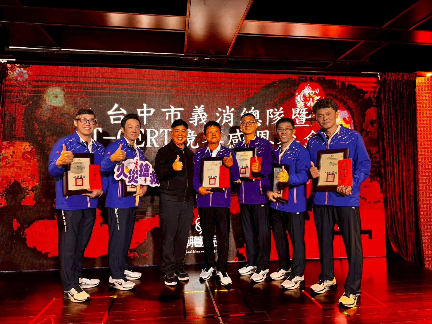為感謝隊伍長期投入訓練與備戰,消防局特別於昨(25)日舉辦表揚慰勞餐會,向每位辛苦付出的隊員致上敬意。消防局也將持續推動義消培訓計畫,強化民間救災能量與社區韌性,讓台中在防災整備上持續領先。