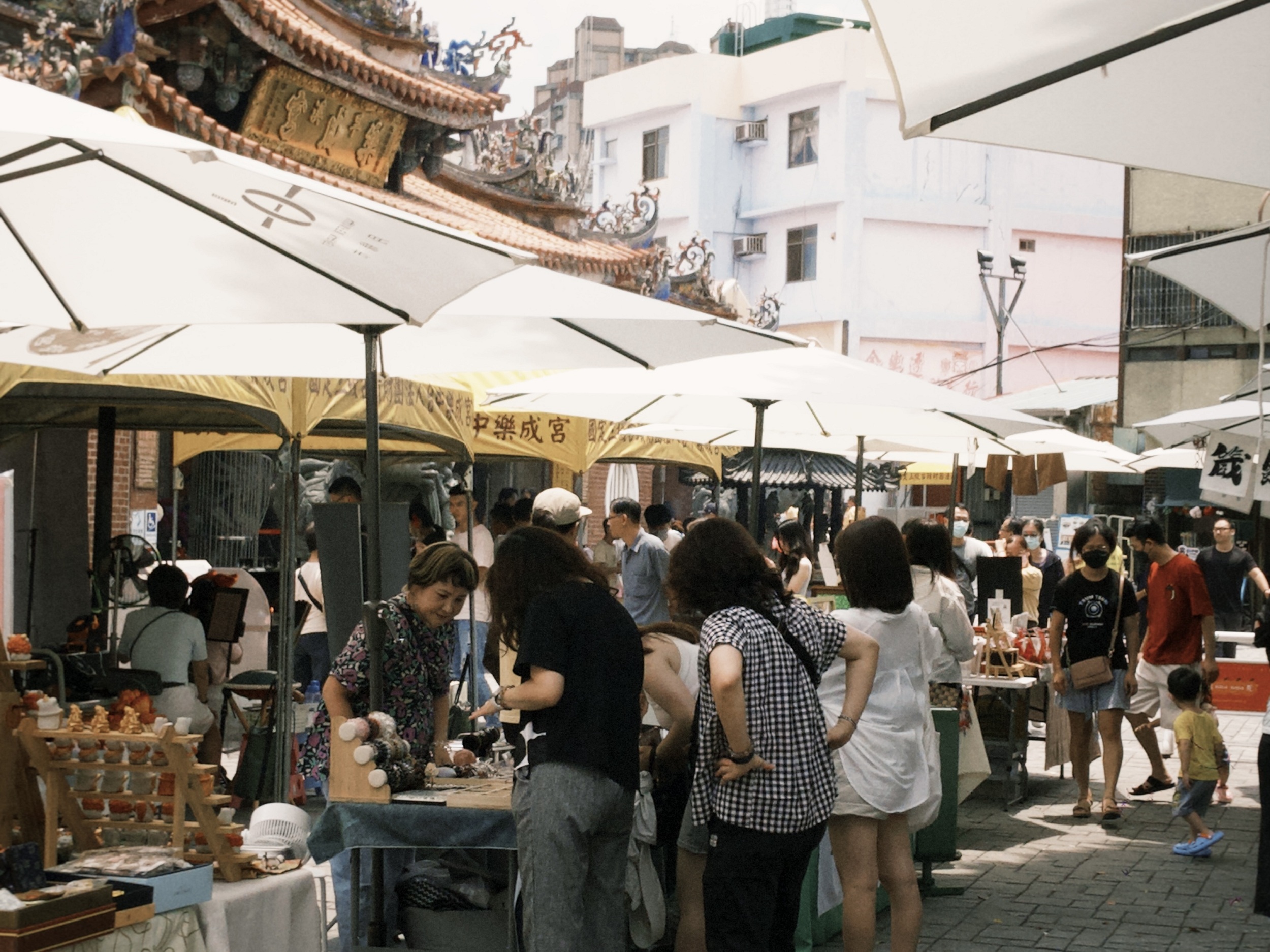 市集區「朋來大百貨」與范特喜微創文化及台中樂成宮月緣市合作,推出超過30攤限定攤位,融合月老文化、青年創意與生活風格,從手作甜點、插畫選物到療癒系小物一應俱全,讓傳統信仰以富含設計感與趣味性的形式在現場重現。