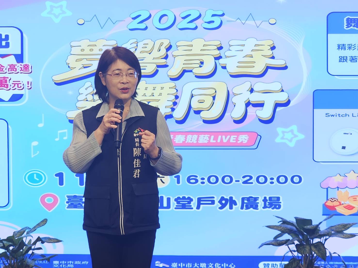 充滿青春能量的「全國學生音樂舞蹈決賽」將於11月29日在台中市中山堂熱力登場。今年以「夢響青春.樂舞同行」為主題的第7屆中山堂青春競藝LIVE秀,即將匯聚全國音樂及舞蹈類雙十強團隊,帶來最震撼、最具創意的舞台競演。台中市政府文化局今(27)日舉行記者會,局長陳佳君表示,活動今年全面升級,不僅展現學生團隊的頂尖實力,更以美食星光市集、青春食光同樂會、趣味闖關與歡樂摸彩等活動,打造專屬青年的超嗨派對,讓民眾沉浸於青春最燦爛的瞬間。