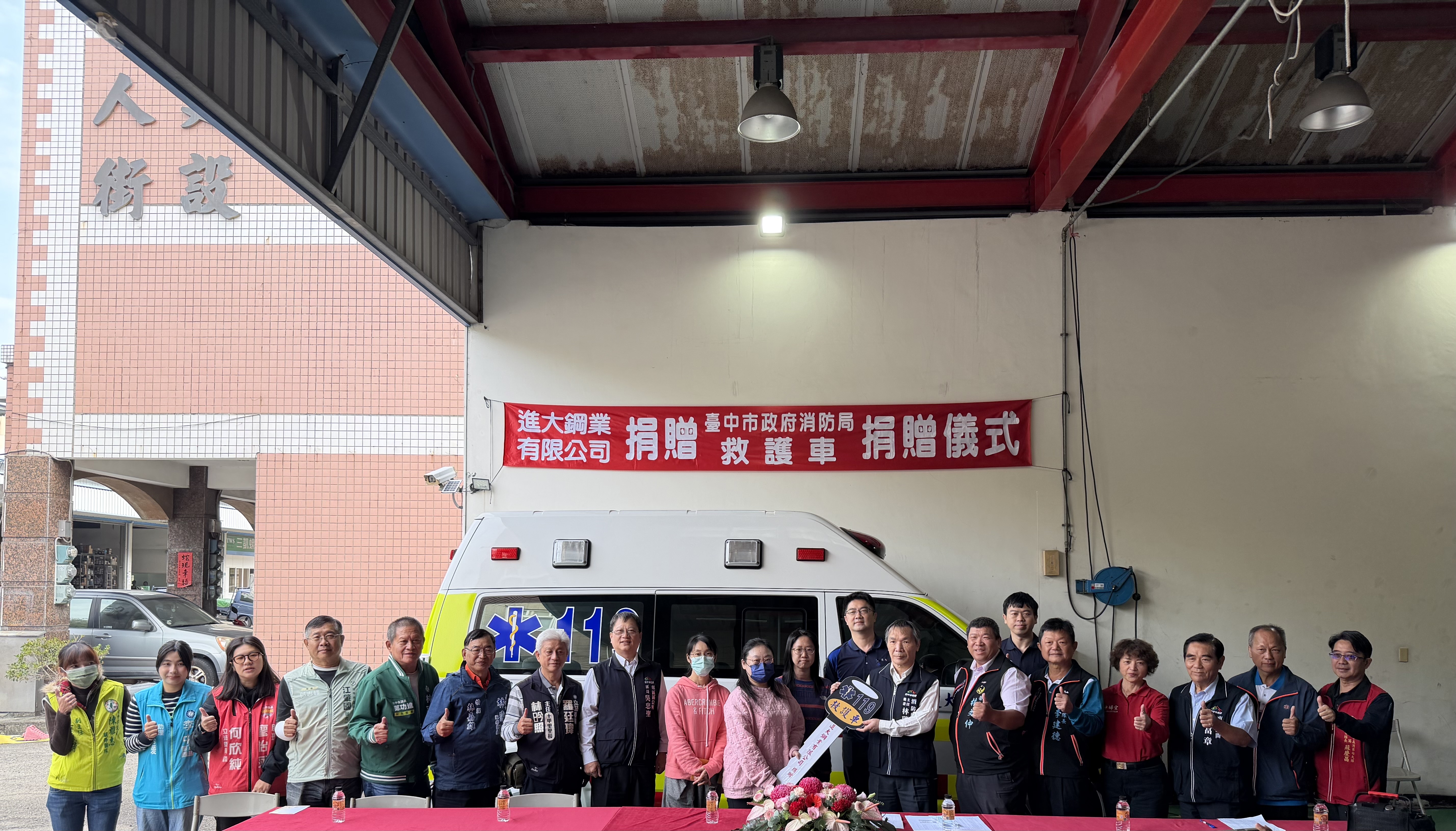 進大鋼業有限公司秉持「取之於社會、用之於社會」的企業理念,長期投入公益關懷,為強化台中市第一線緊急救護量能,捐贈一輛全新救護車及多項救護設備予台中市政府消防局,希望能提升救護裝備、縮短救護反應時間,進一步保障市民生命安全。捐贈儀式於今(28)日於東英分隊舉行。