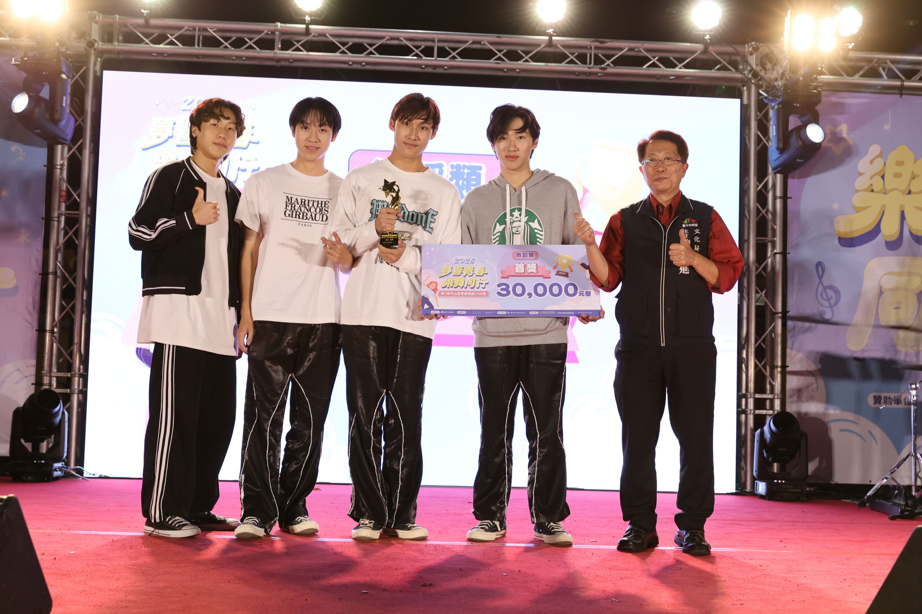 大墩文化中心指出,今年決賽競爭格外激烈,各組隊伍皆展現高度完成度與亮眼特色,不論在舞台魅力、造型風格、服裝呈現到整體舞台氛圍營造,都展現出亮眼的統一性與藝術性,充分體現青年世代的創意火花與無限可能。經專業評審團審慎評選後,舞蹈類首獎由多校組合「萌世代」奪下,評審團獎由多校組合「Shudaboll」脫穎而出;最佳創意獎、最佳造型獎及最佳人氣獎則分別由樹德家商「樹德女力」、多校組合「水煮蛋1.5」、多校組合「萌世代」抱回獎項。
