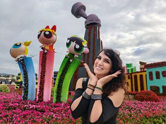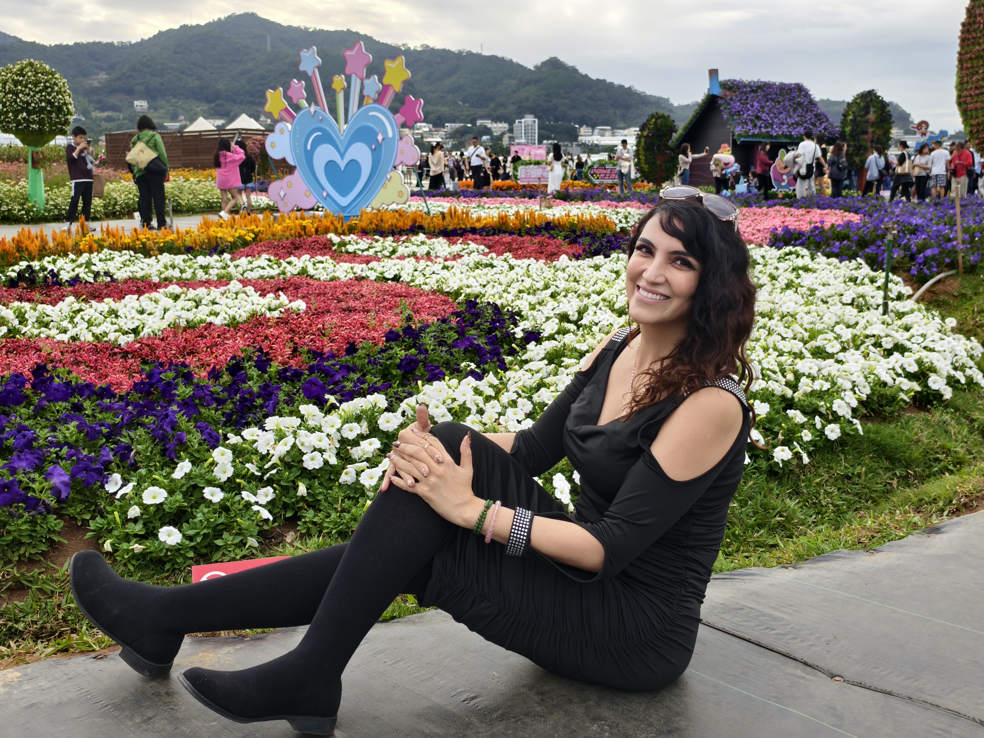 觀旅局長陳美秀表示,今年新社花海花毯節以「動畫元素 × 花卉藝術 × 永續共創」為策展核心,將備受喜愛的飛天小女警經典元素與在地花卉巧妙融合。現場共有15個裝置及角色立牌,是歷年最多。主花毯高18米、直徑60米,最高處聳立魔人啾啾基地,每半小時自動展演泡泡、水霧與機械動態,成為遊客爭相拍照的焦點。園區更設置場景裝置,如盪鞦韆與甜甜圈店,讓大小朋友都能身歷其境,親自參與冒險。