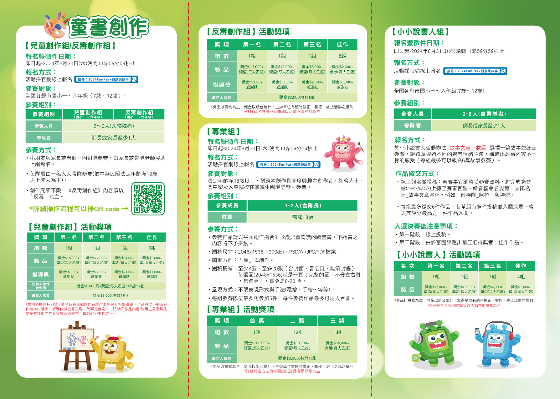387230000A_1130004108_ATTACH3 一、法務部結合智趣王數位科技股份有限公司辦理2024年「FunPark創意說故事-數位繪本創作大賽」活動,請國小師生踴躍報名參加。 二、相關活動及報名資訊,請上意揭賽事網站(https://story.funpark.com.tw/2024/index.do)查詢。