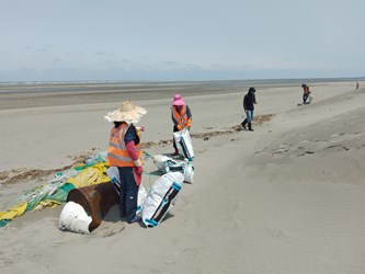 今年度有許多參與者不畏烈日,捲起衣袖、彎下腰,齊心撿拾海岸廢棄物,從寶特瓶、塑膠袋到漁具碎片,大家同心協力清理海灘,讓大安海岸線恢復潔淨面貌。中市府很感謝各團體今年度的參與,也邀請大家明年能持續參與相關環保行動,以實際行動守護我們共同的藍色家園。
