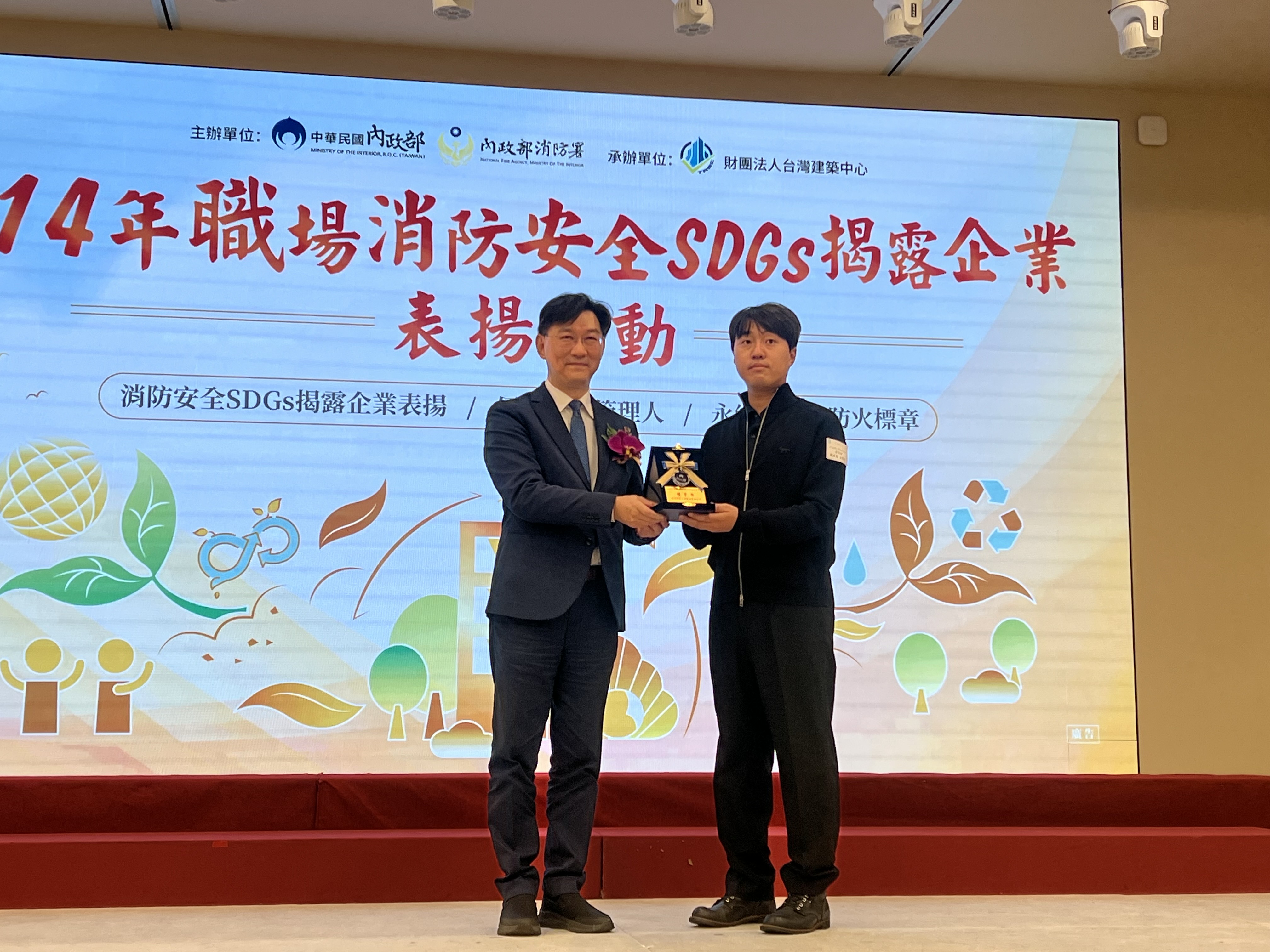 為落實防火管理制度、推動防火意識融入企業文化並激勵防火管理人士氣,內政部消防署與財團法人台灣建築中心昨(3)日舉辦「114年職場消防安全SDGs揭露企業表揚活動」,表彰在消防安全管理揭露及永續減災作為上表現優異的企業與防火管理人,展現我國與國際永續潮流接軌的決心。
