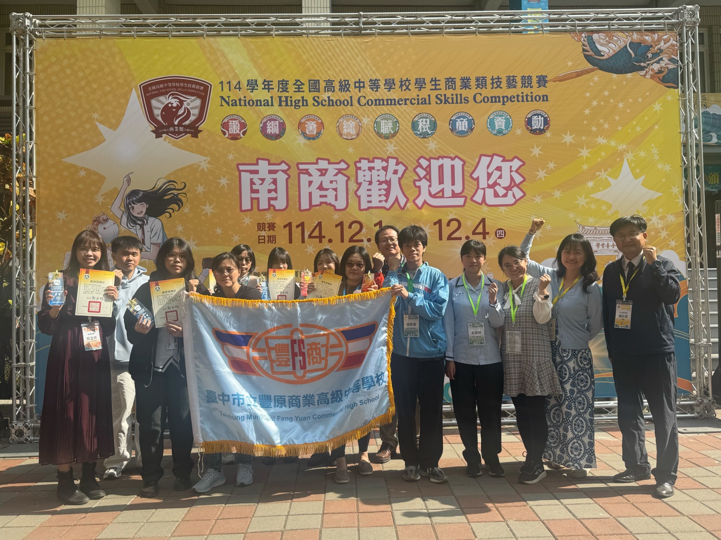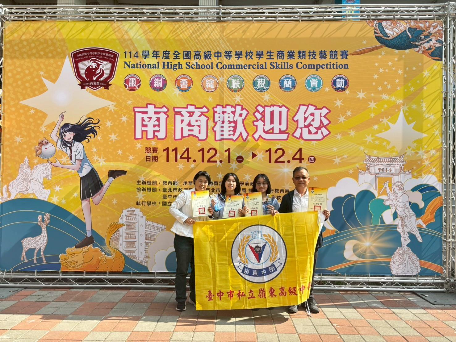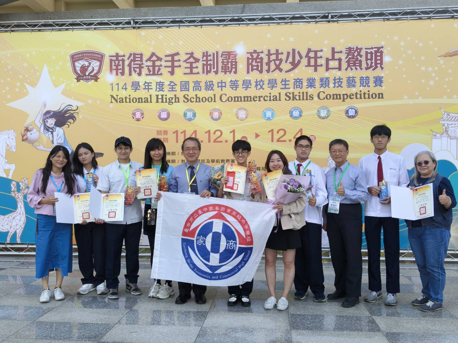 教育部主辦的「114學年度全國高級中等學校學生商業類技藝競賽」於12月1日登場,今(4)日圓滿落幕。這次競賽共吸引519位來自全國各地的優秀學生共同角逐競賽獎項,台中市共有57位選手參賽,齊心拿下9金手21優勝,振奮人心,值得喝采!