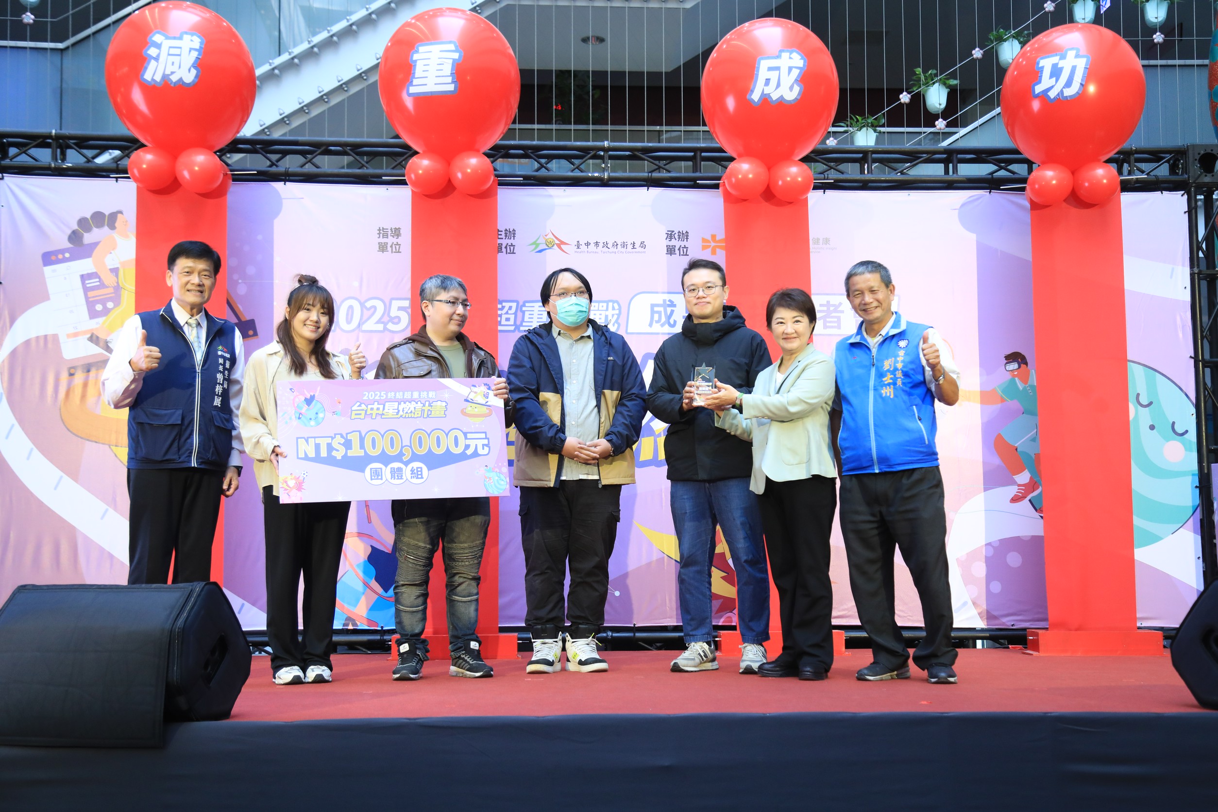 台中市政府衛生局今(5)日舉辦「2025台中星燃計畫:終結超重挑戰」成果表揚記者會,宣布為期三個月的大型健康競賽圓滿落幕。市長盧秀燕出席嘉勉表示,星燃計畫源自她看見許多市民努力減肥卻常覺得孤單,因此市府推出專業陪伴與科學方法,邀請大家一起變健康。活動共吸引27,786人報名,等於每100位市民就有1位響應,最終超過8,000人成功達標,累計甩肉4.5萬公斤,展現市民追求健康的驚人行動力。