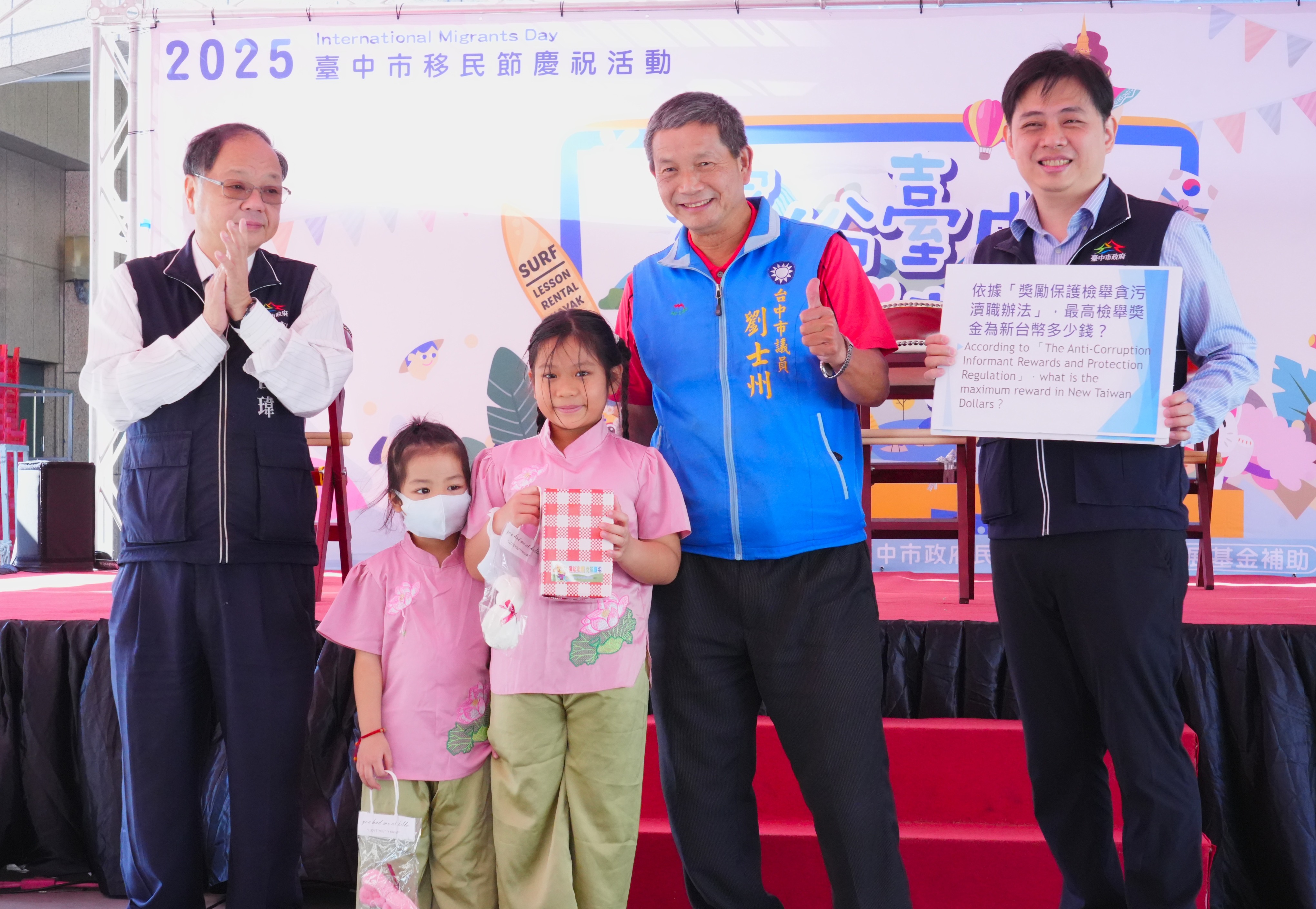 民政局補充,為提升市民對廉政理念的理解並強化反貪意識,政風室特別結合「台中市114年移民節慶祝活動」進行社會參與反貪宣導,以有獎徵答等寓教於樂方式,讓民眾在輕鬆氛圍中吸收廉政業務、消費者保護與反詐騙等重要資訊,期盼讓廉潔觀念更貼近民眾日常,形塑全民共同守護公正透明的社會價值。
