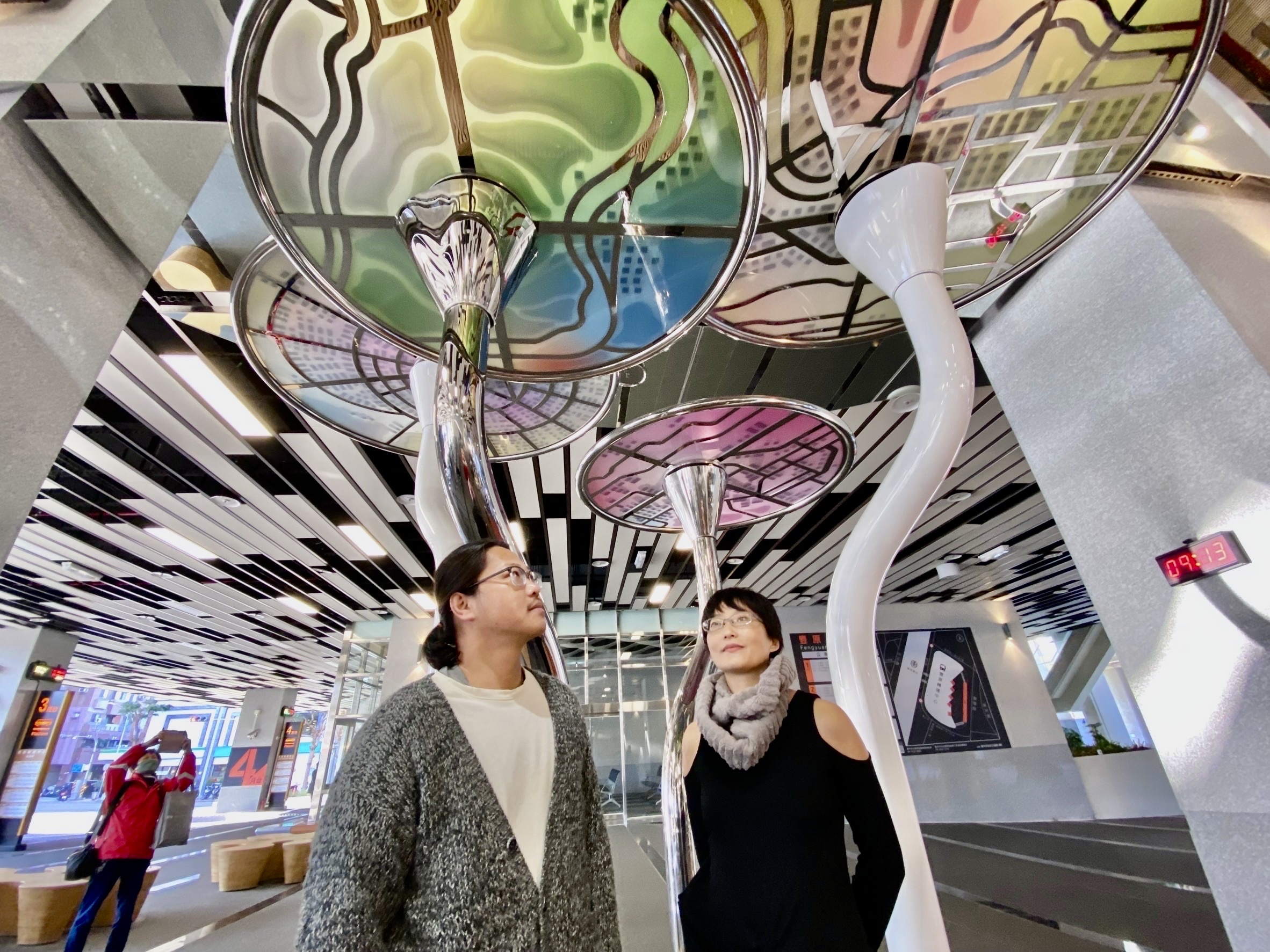 交通局表示,除了停車場吹藝術風,轉運中心也升級為美術館氣氛。豐原轉運中心的動感風景,由在地藝術家團隊以「運轉城市」為題,把豐原串聯山線各區的交通意象變成旋轉的藝術裝置,作品會動、會轉,乘客抬頭看到藝術跟班次一起「轉出節奏感」。出身豐原在地的藝術家林建佑、設計師林韋佑、博物館人廖沛怡說道,這是獻給家鄉的禮物,呈現風華運轉城市再現,發展地方觀光為目標設計。