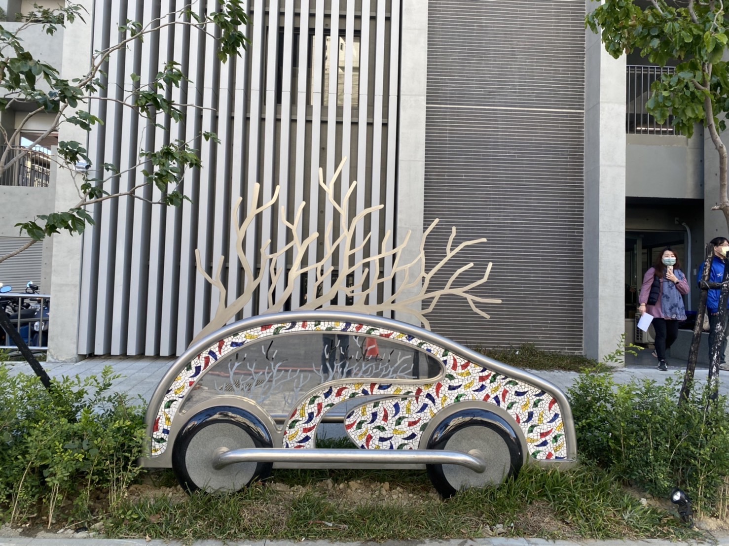 葉局長還指出海線小驚喜,沙鹿沙田立體停車場兩輛藝術車款超吸睛,藝術家郭國相創作《樂遊》,以不鏽鋼與馬賽克拼出繽紛車體,車旁還有座椅讓人休憩聊天,藏著沙鹿先民拓荒的故事,民眾停好車別急著走,這裡不只是停車點,更是城市記憶的園地;而北屯舊社站停車場公共藝術「停車.MRT遇見ART」,靈感來自交通錐撐起的圓形意象,象徵捷運與台鐵的完美銜接。