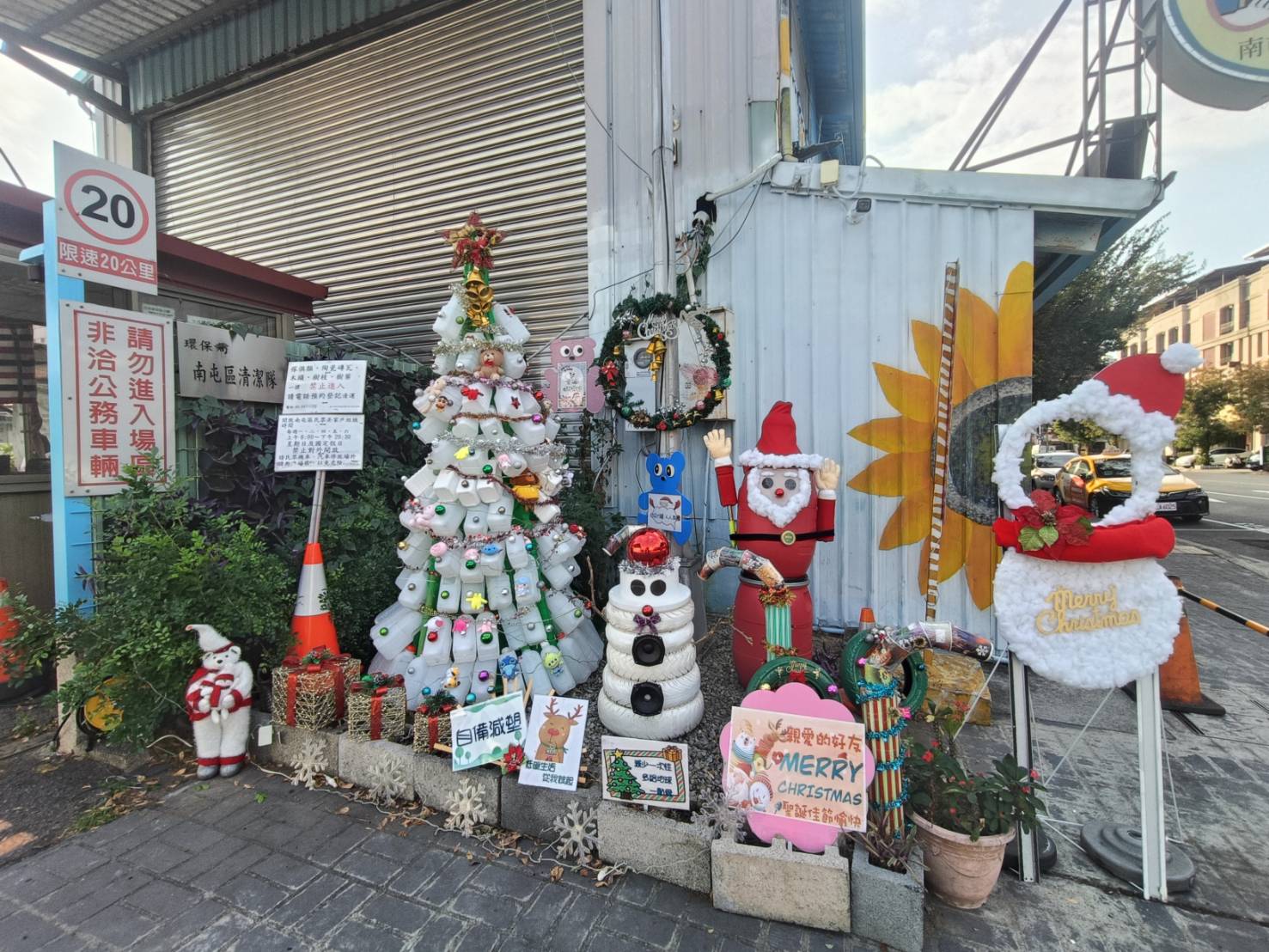 隨著聖誕佳節將至,台中市政府環保局在南屯區清潔隊隊部大門前的環境教育宣導區,推出以回收素材與再利用裝飾打造的「環保聖誕樹」,為城市增添節慶氛圍,也傳遞永續環保理念,吸引不少路過民眾駐足欣賞、拍照留念。環保局並於114年12月20日(六)至12月30日(二)上班日上午9時至下午4時(週三、週日及12月25日休息)推出「永續聖誕、打卡有禮」活動,邀請市民一同感受不一樣的綠色聖誕。