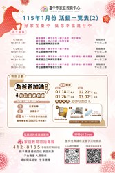 臺中市家庭教育中心【1151月份活動一覽表】 搶先開箱!