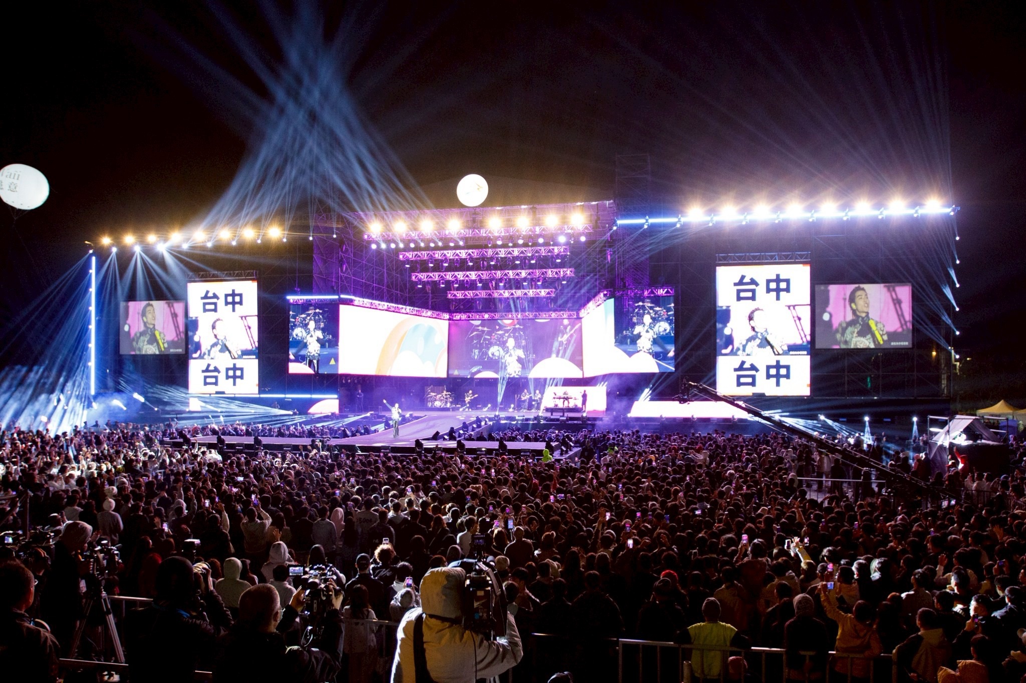 台中2026跨年晚會今(31)晚在水湳中央球場登場,不僅有告五人、盧廣仲、動力火車等跨時代重磅歌星,更獨家邀請蕭敬騰睽違5年在台壓軸開唱,吸引30萬人次朝聖。市長盧秀燕以「馬麻愛你」4字超簡短致詞再刷新紀錄,向市民祝賀馬年快樂,並與現場民眾一同321倒數,在180秒中高空璀璨煙火中迎接新年到來。
