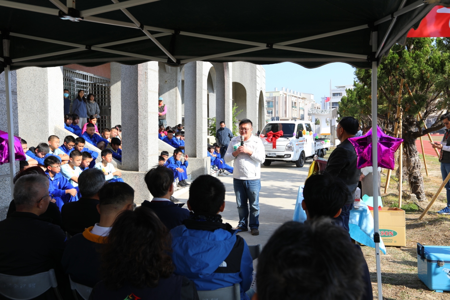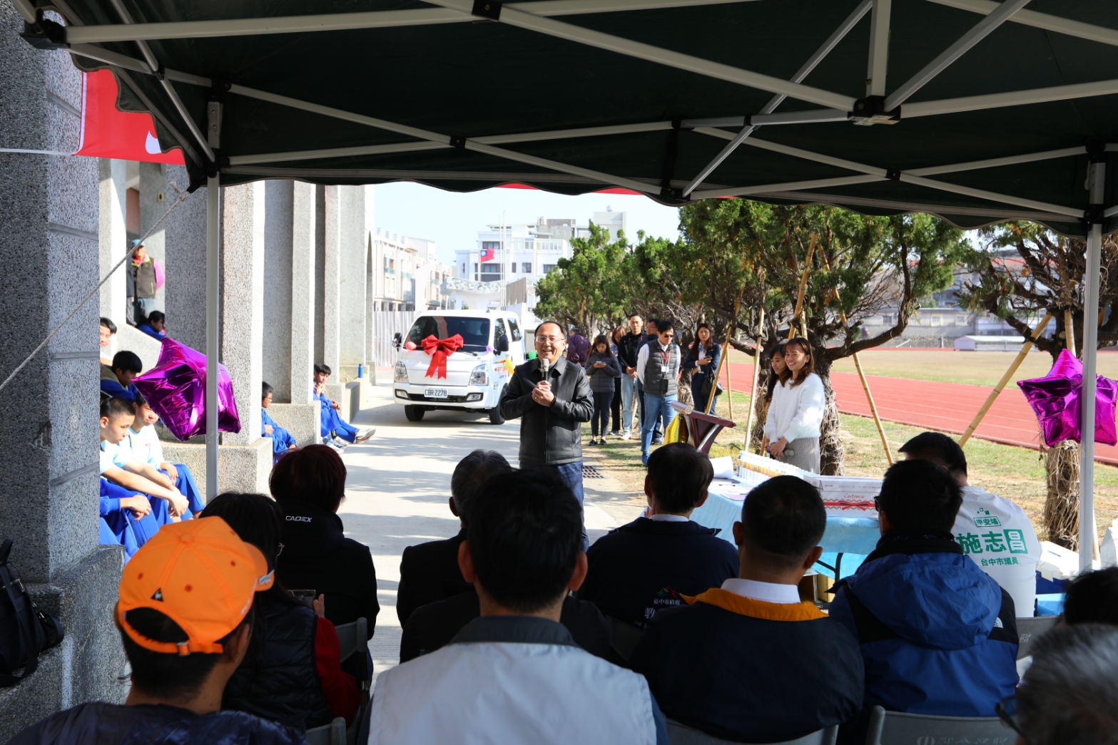 台中市立日南國中自由車隊長年深耕基層培訓,是國內自由車選手的重要搖籃。為協助球隊減輕訓練與參賽期間器材載運的後勤壓力,巨大集團(捷安特)捐贈一輛全新公務貨車予日南國中,今(8)日於校內舉行捐贈儀式。台中市政府教育局長蔣偉民、市議員施志昌及捷安特公司董事長劉湧昌等人到場見證,共同為選手加油打氣。