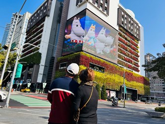 陳局長表示,市府在「巨型姆明」身上藏了1個彩蛋,就是來到市民廣場現場往姆明(Moomin)手指的方向看,「全台最大」的3D裸視螢幕正熱播著「姆明一族」(The Moomins)喝咖啡、吹泡泡、跳出框外等超逼真的沉浸式互動宣傳片。姆明3D裸視動畫即日起至1月31日限時登場,每日上午10點到晚上10點,每15分鐘播放一次,誠摯邀請各地民眾一定要把握機會,造訪2026新年最可愛的打卡點。