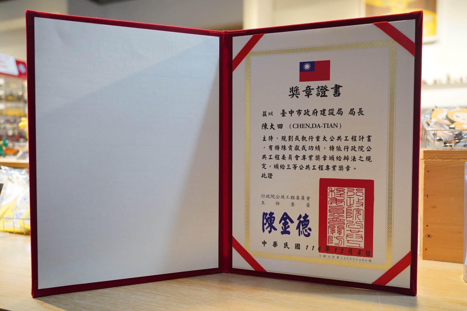 建設局補充,陳局長此次獲頒「行政院公共工程專業獎章」,表彰其多年來在公共工程政策推動、工程品質提升、制度改革及人才培育等方面的卓越貢獻,陳局長則認為這項榮耀屬於整個建設團隊,也代表中央對台中市公共工程治理方向的高度肯定,未來市府將持續以專業為核心,精進工程管理制度,穩健推動各項公共建設。