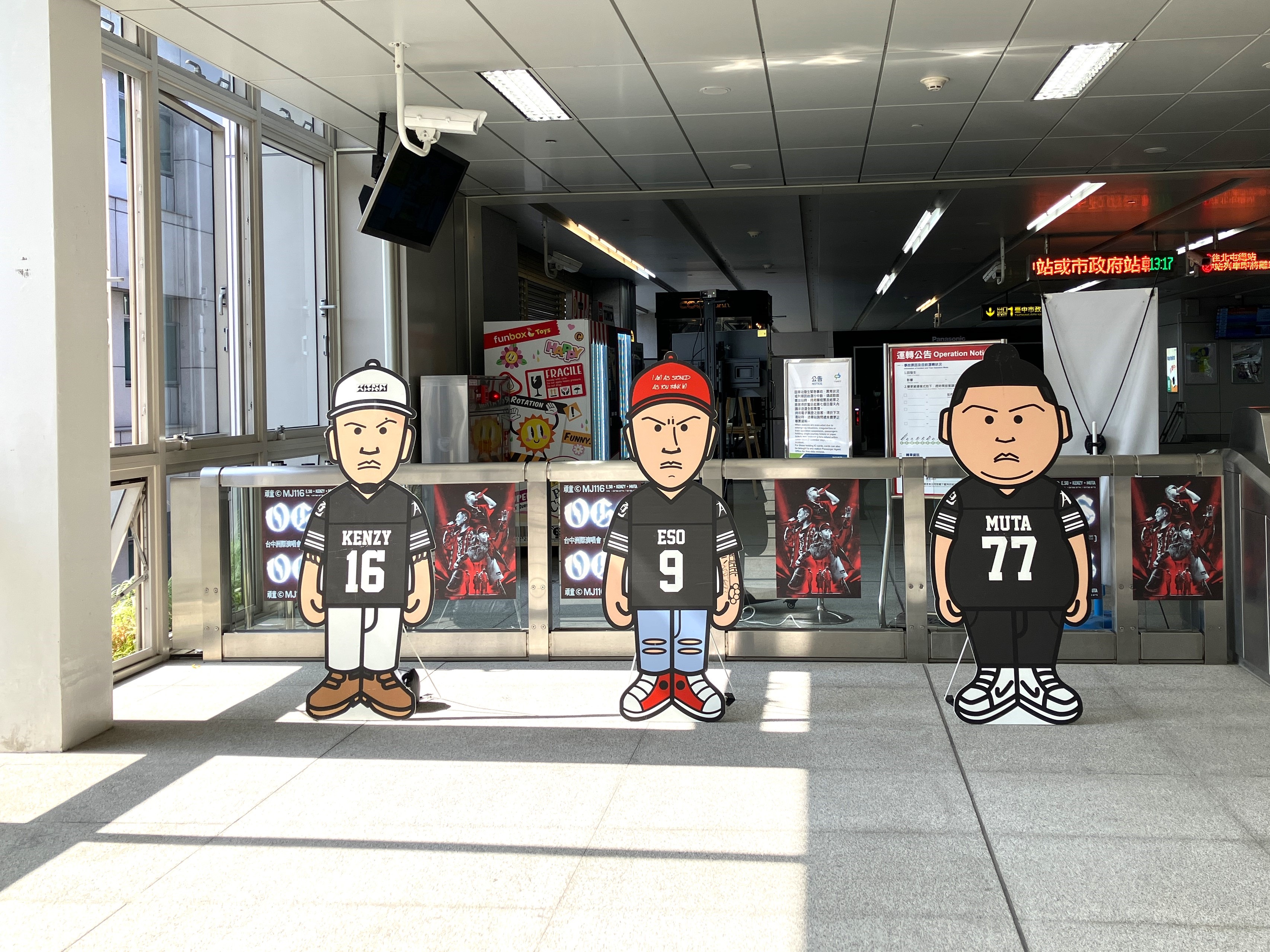 中捷說明,立體明信片設計結合專屬Q版角色套印,集章完成後可折成立體造型,讓Q版頑童成員與台中捷運列車同框,成為桌上最吸睛的嘻哈小物;此外,高鐵台中站、市政府站及文心中清站也設置Q版頑童人形立牌,提供歌迷拍照打卡,留下專屬於台中的演唱會回憶。
