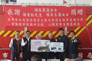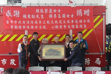 消防局特別感謝生煒工業有限公司賴東松先生、賴李玉蘭女士長期關注公共安全、熱心支持消防工作,其善行義舉不僅展現深厚的地方情誼,也為提升中市消防量能注入重要助力。消防局將持續秉持專業精神與精訓勤練的態度,全面強化救災救護能力,為市民生命財產安全提供最堅實的保障。