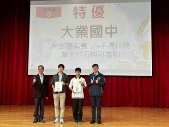 在數學類方面,教育局說明由西區忠孝國小、光榮國中及大業國中學生榮獲特優。其中,西區忠孝國小以「神的數字─上帝數」為題,研究架構完整,學生合作默契佳,發表台風穩健;光榮國中「移『形』換『魏』──以正三角形改良華容道之幾何探討」主題新穎,巧妙結合數學工具進行分析;大業國中「無劍勝有劍-不滯於物,草木竹石均可為劍」則充分展現學生靈活運用課堂概念與嚴謹邏輯推理的能力,三件作品於複選發表時皆口條清晰、論述流暢,深獲評選委員肯定。