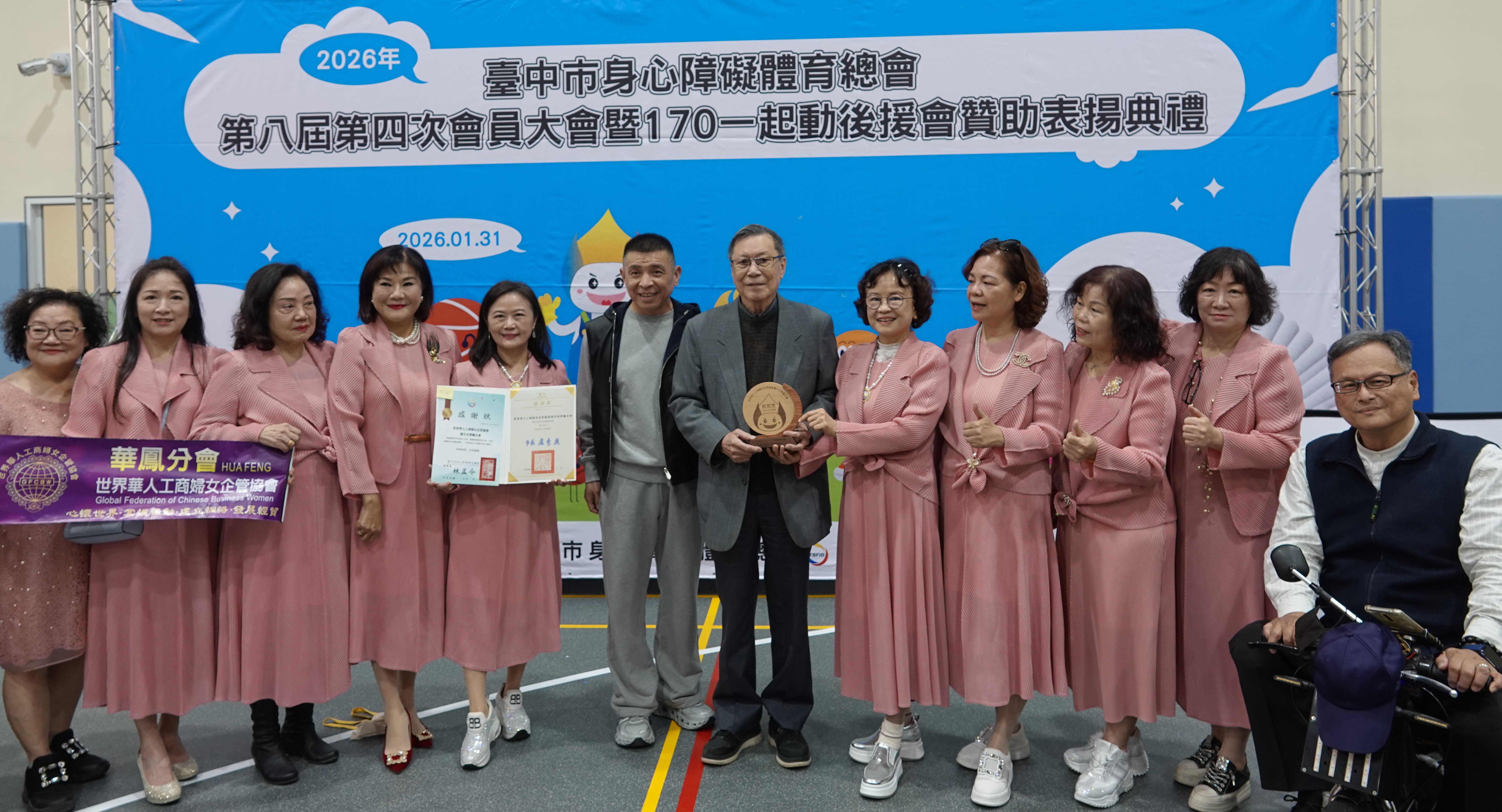 今日活動,台中市政府運動局長游志祥、教育局長蔣偉民、台中市身心障礙體育總會理事長暨市議員林孟令、創會理事長陳有江、輔導理事長陳清龍、榮譽理事長陳成添議員服務處主任吳承勳、170一起動後援會會長賴鴻毅、維他露基金會執行長詹益榮、甘霖基金董事侯至祥、金緯關係企業副總經理王俊業、瓏昇實業董事長林柏根、世界華人工商婦女企管協會台中市華鳳分會長曾素美等均到場共襄盛舉。
