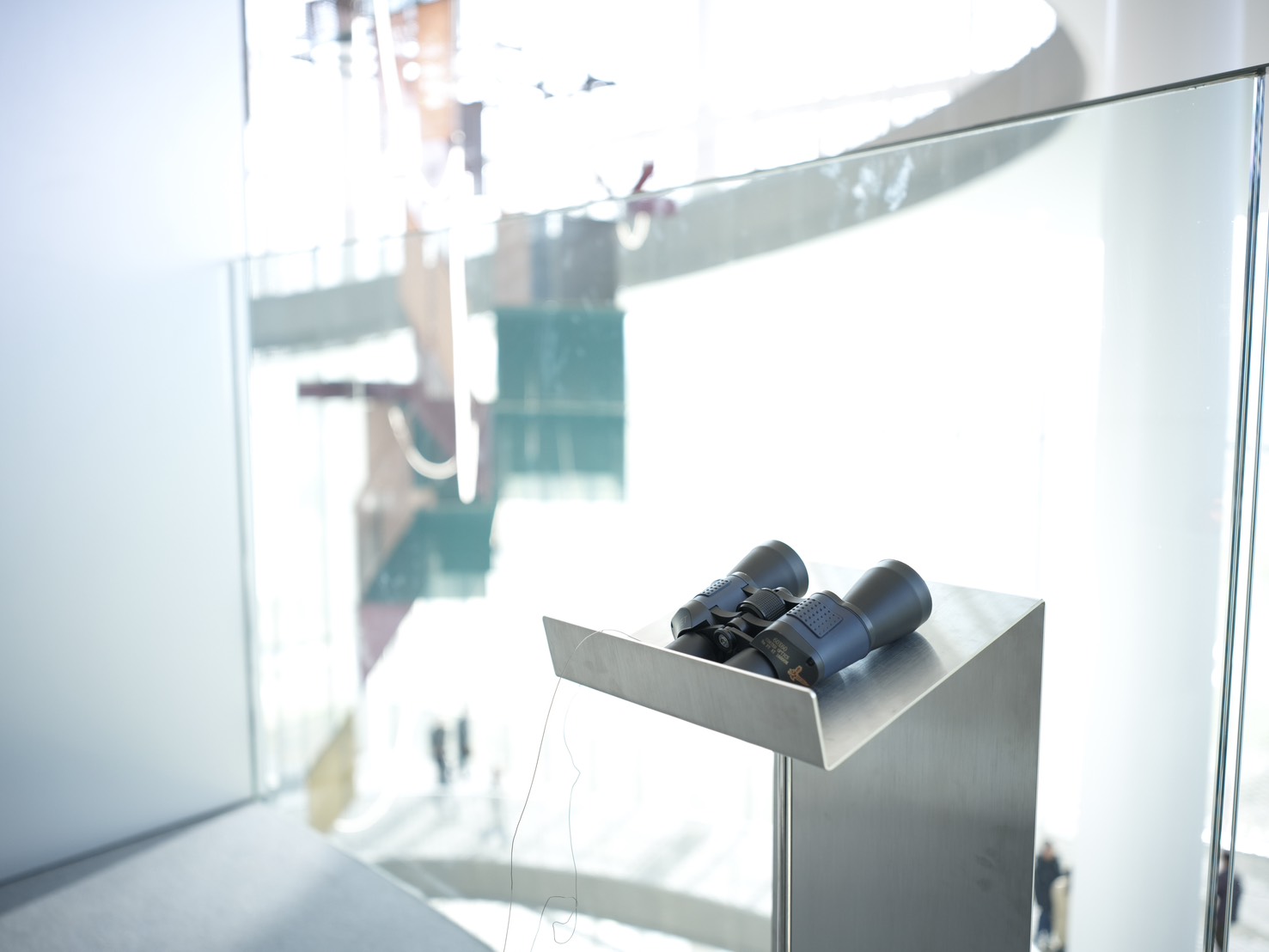 美術館六樓設有兩處不同觀看方向的望遠鏡,一處在五樓往六樓的外掛梯,視野遼闊,可盡覽中央公園熱門的野餐點、會展中心及周邊城市景觀,呈現最chill的視角;另一處則隱身展間後的公共空間中,透過望遠鏡向下觀看五樓展場,捕捉作品與觀眾互動的瞬間,為參觀體驗增添意外驚喜。
