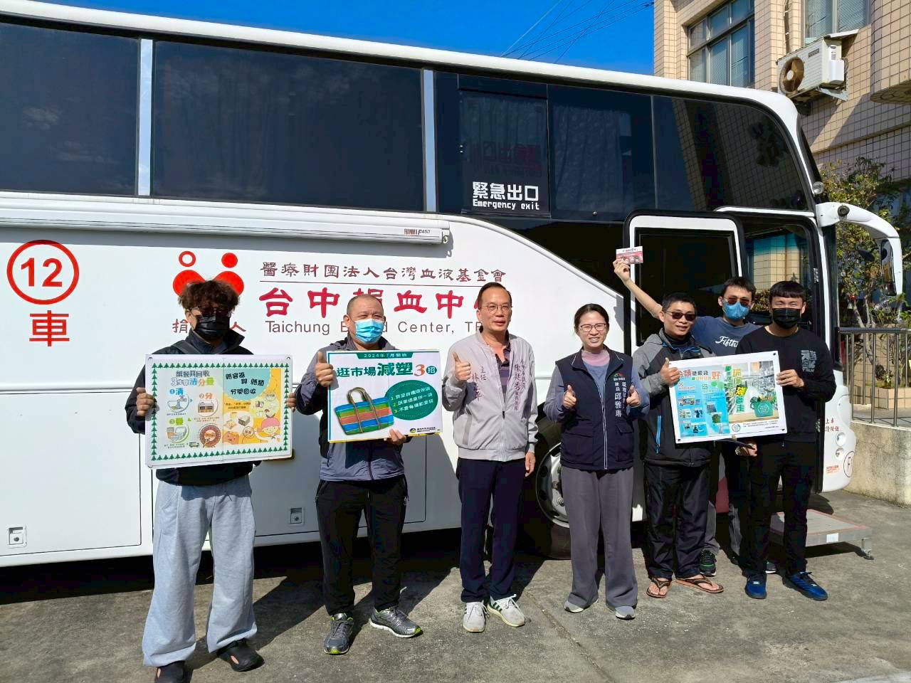為減緩過年血荒、助人一命,台中市政府環保局與捐血中心合作辦理捐血活動,把捐血車開到清潔隊,由第一線清潔同仁們捐獻熱血,日前由清淨園區及中西東南區隊打頭陣,今(4)日由清水區隊、豐原區隊接力,號召清潔同仁及鄰近居民響應,熱血一袋、無可取代,分區4場次超過500人參與,清潔隊員熱血加碼、愛心不落人後,做好體內環保,捐血做愛心、利己又利人。