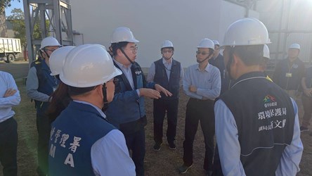 環境部彭啓明部長偕環境管理署及資源循環署長官至外埔綠能生態園區視察合照