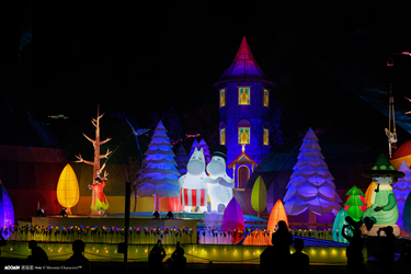鄭副市長表示,中台灣燈會自2月15日(小年夜)點燈至3月3日(元宵節)閉幕,展期16天期間僅除夕休展。適逢農曆生肖馬年即將到來,為讓傳統藝文節慶邁向國際,中台灣燈會今年特別與Rights and Brands Asia(RBA)旗下80週年的全球人氣IP「姆明一族(The Moomins)」跨界合作,巧妙取用”Moving on”的諧音與姆明(Moomin)的角色形象,以「幸福蜜馬 台中MOOMIN ON!」為主題,打照以姆明一族為主角的展區。主燈區「極光下的姆明谷」以有著紅瓦屋頂、藍莓色外牆的15公尺高「姆明家」為視覺焦點,述說親友間彼此相愛、互相接納的暖心敘事,技術上更突破以往IP氣偶只能靜態觀賞的框架,結合動態機械科技,讓氣偶搭乘環形軌道列車穿梭於樹林山谷間,搭配如蝴蝶飛舞的高空綢吊專業舞者,輔以彩雷、煙霧呈現漫天極光的效果,加上特效泡泡帶來的驚喜,全方位營造出這場洋溢著希望與幸福的夢幻極光秀。