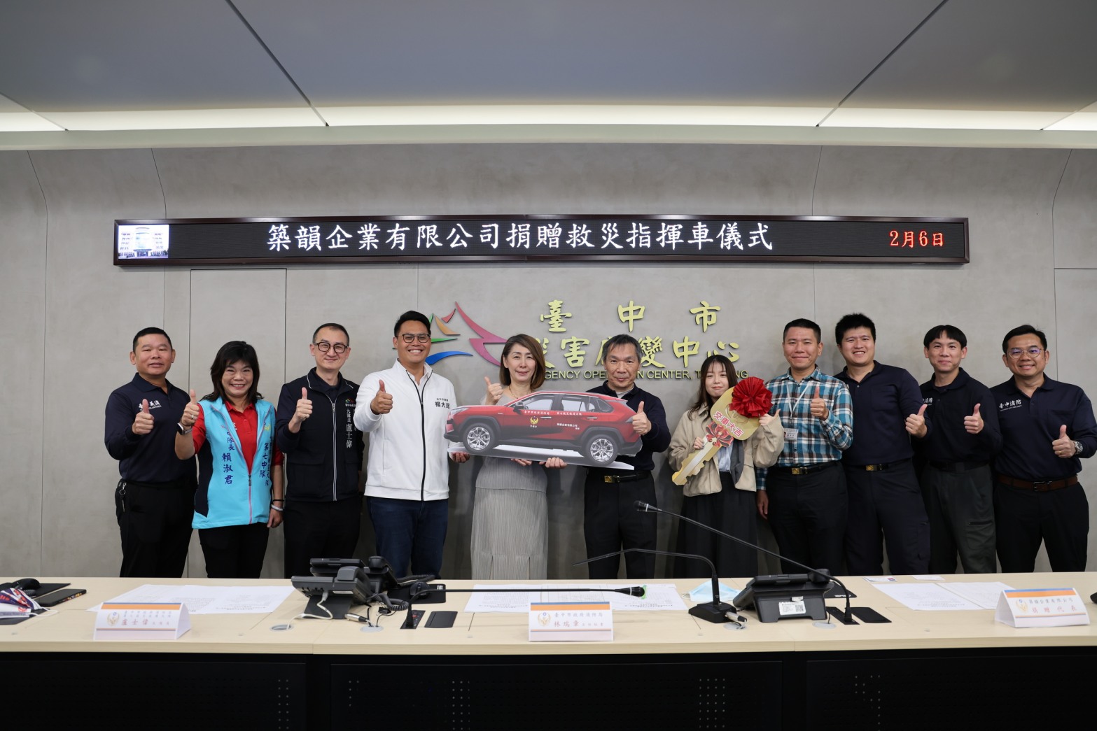 消防局說明,築韻企業有限公司深耕台中多年,從事於精品廚具的設計及安裝,除了是中部地區的指標性企業外,張董事長更秉持著匠人精神,致力於以最頂尖的工藝打造精品生活空間。張董事長認為「家」是社會穩定的基石,他對產品品質的嚴謹要求,也延伸至他對社會安全與公益的關注。而今日張董事長將這份堅持轉化為對社會大眾的保障,提供一部高性能救災指揮車,與消防英雄們一同成為守護台中市民安全的堅強後盾。