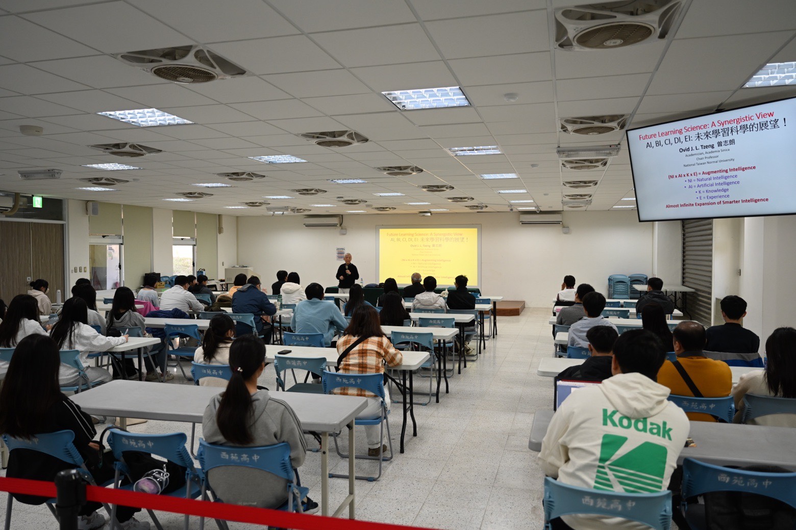 為培養學子面對未來科技浪潮的跨域整合能力,台中市政府教育局今(7)日於市立西苑高中舉辦第5場「傑出科普講座」,特別邀請中央研究院院士曾志朗親臨開講,以「AI, BI, CI, DI, AND EI: Prepare for Future Learning Sciences」為題,帶領現場師生深入探討人工智慧、生命科學與人文素養交織而成的未來學習樣貌,為學子開啟一場兼具高度與深度的知識饗宴。