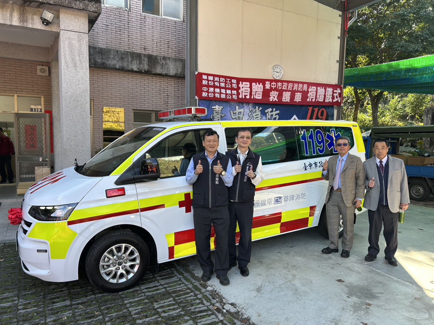 消防局特別感謝華曄消防工程股份有限公司與中源機電顧問股份有限公司,以實際行動支持緊急救護工作,讓救護同仁得以運用更完善的裝備,全力投入每一次救援任務。市府也將持續透過公私協力,強化救災救護量能,共同守護市民生命安全,打造更安心、更具韌性的宜居城市。