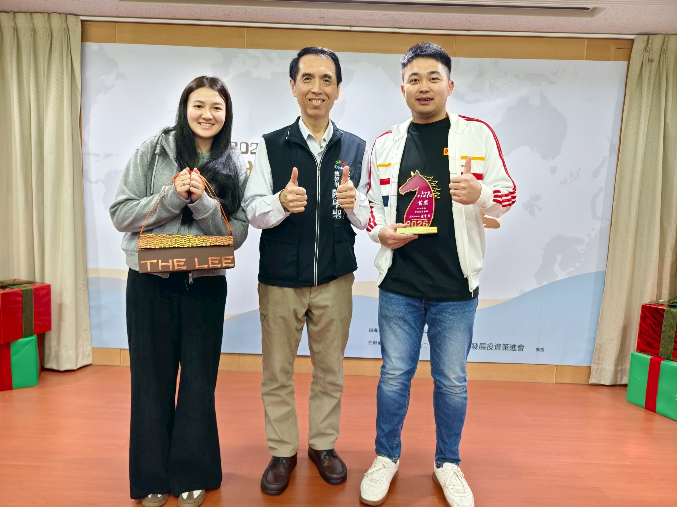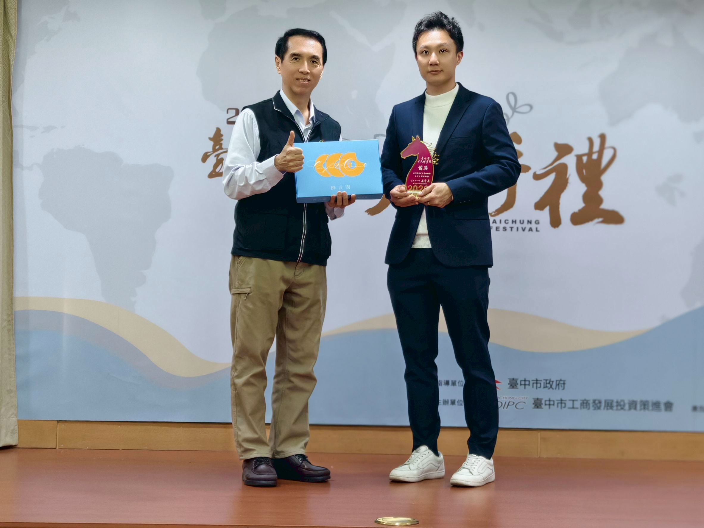 年節送禮更多選擇!台中市工商發展投資策進會今(11)日舉辦「2026第17屆台中市十大伴手禮頒獎記者會」,公布20家首獎品牌,由總幹事陳學聖親自頒發獎盃。工策會表示,台中素有「糕餅之鄉」美譽,本屆共選出「糕餅烘焙組」及「特色文創組」各10家首獎品牌,展現台中新舊融合的產業實力。適逢農曆春節將至,工策會期盼透過獎項帶動年節買氣,持續擦亮台中伴手禮金字招牌。