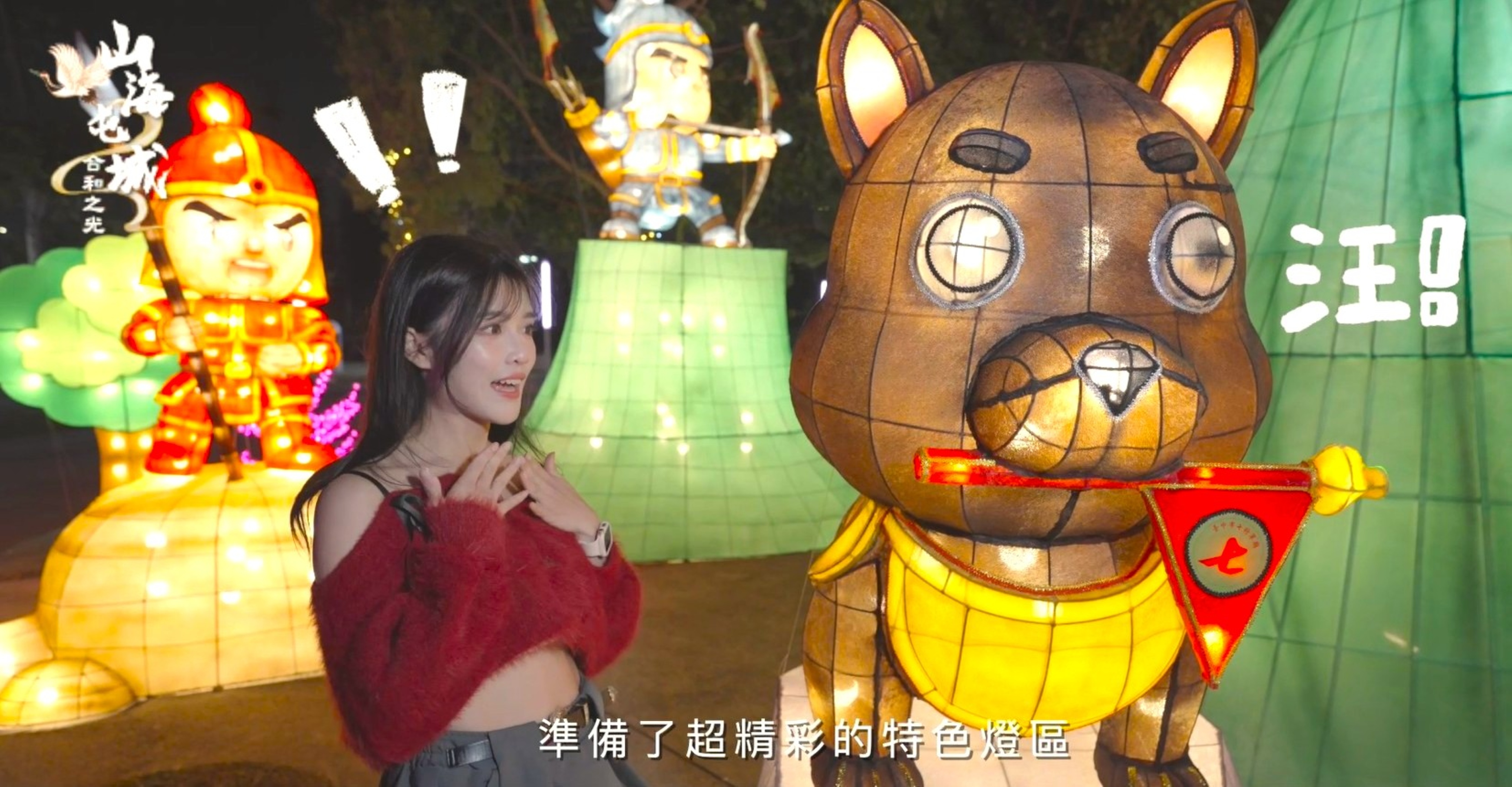 民政局指出,在宣傳影片中,貓貓化身最萌導覽員,穿梭燈海逐一開箱「山、海、屯、城」四大主題燈組,帶領民眾一秒掌握必拍亮點。屯區以大里七將軍廟為靈感,打造氣勢十足的七將軍爺燈組,象徵忠義守護,貓貓更與義犬造型花燈俏皮互動,現場傳來可愛「汪汪」聲響,萌度爆表;海線結合梧棲鴨母寮永天宮,由媽祖端坐舞台中央、永天小鴨護駕,搭配乘浪祥舟與流動光影,營造「海上安瀾」的祝福氛圍。