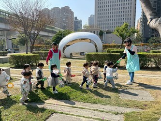 除了提燈遊行,為了讓孩子充分體驗滿滿的年節儀式感,老師也在農曆連假前帶著孩子們前往市政大樓一樓服務中心向志工及現場民眾拜年。孩子們用稚嫩童音齊聲喊出「新年快樂」,志工阿姨們則熱情回贈裝滿糖果餅乾的小紅包,現場笑聲不斷,互動場面溫馨滿點。滿溢的年味與人情味,正是「幸福城市」的最佳縮影,傳遞春節的喜氣同時,更具體展現了台中推動幸福職場與友善托育的溫馨成果。