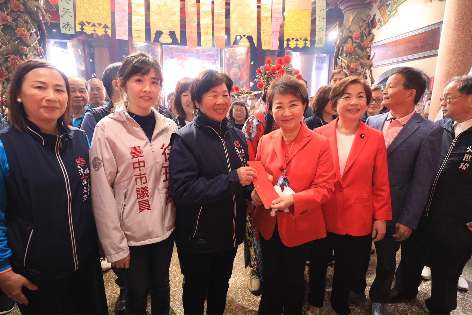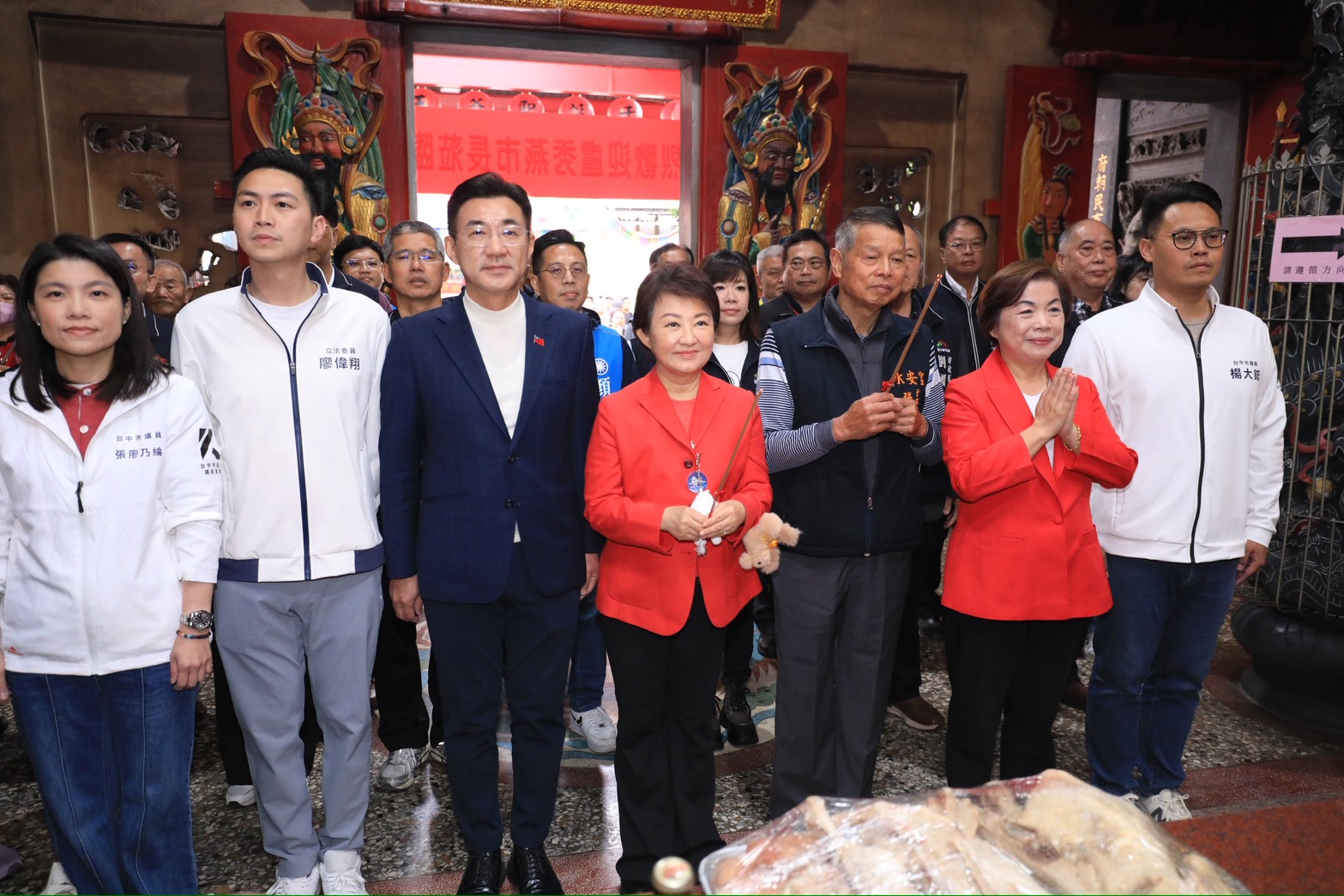 今日參拜活動,市長盧秀燕、立法院副院長江啟臣、楊瓊瓔、廖偉翔、顏寬恒、市議員江和樹、黃馨慧、張廖乃綸、楊大鋐、徐瑄灃、賴朝國、林孟令、林昊佑、民政局長吳世瑋、新聞局長欒治誼、工策會副總幹事林家興、大里區長鄭正忠、西屯區長鄭錫禧、潭子區長劉汶軒、龍井區長何宜真、龍井區農會總幹事林裕議、財團法人台中市七將軍廟董事長李淵全、財團法人台中市永安宮董事長張清和、潭水亭觀音媽廟主委林玉鶴、龍泉岩主委陳文雄及在地各里長皆到場,市議員吳呈賢、吳建德、吳瓊華也派員到場致意。(2/17*17)*民政局