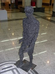 創作理念:爬樓梯的人用黑色的電線製作。表示城市中黑暗的角落及人心的提防。