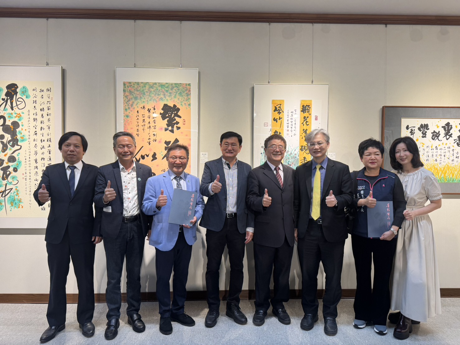 春風送暖、萬紫千紅總是春,國立中興大學藝術中心今(26)日舉辦《墨影繁花—黃國書書法藝術展》開幕式,邀請中興大學第20屆傑出校友、曾任五屆市議員及三屆立法委員的書法藝術家黃國書重返校園,展出逾70件融合傳統筆墨與當代彩墨視覺的創作。台中市副市長鄭照新出席開幕,肯定其長年深耕文化、退而不休的藝術實踐,也象徵市府對在地藝文發展與中部美術史傳承創新的高度重視。